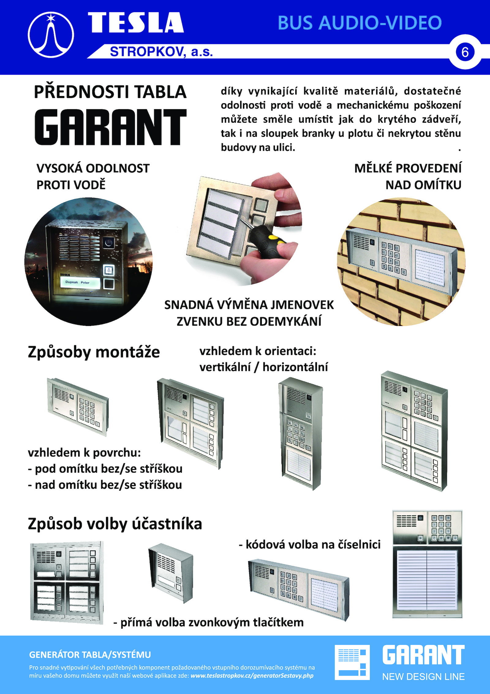 Domovní dorozumívací a přístupové systémy TESLA 2024