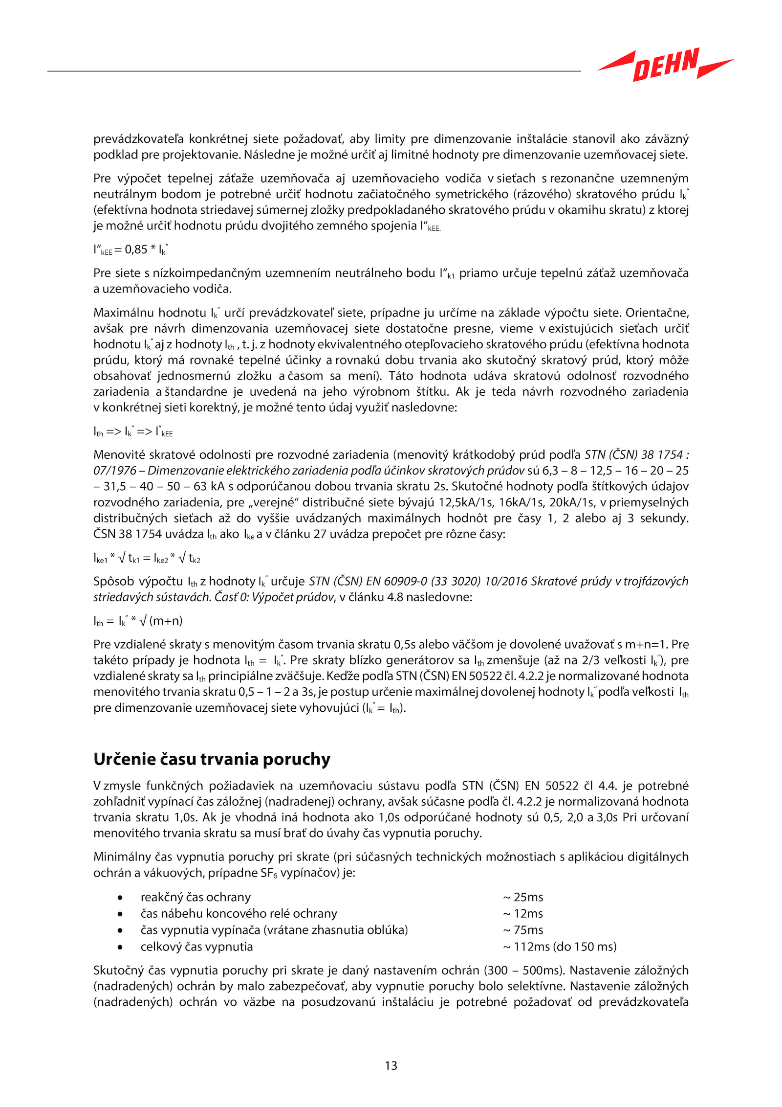 distribučných sieťach vyššie uvádzaných maximálnych hodnôt pre časy alebo sekundy. Keďže podľa STN (ČSN) 50522 čl.2.13