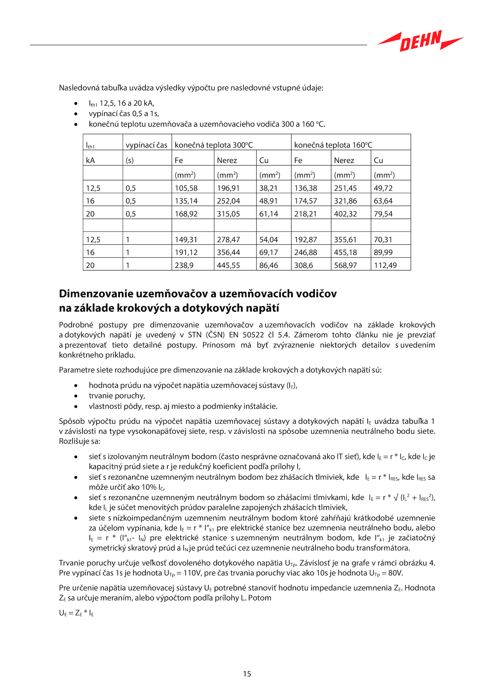 Spôsob výpočtu prúdu výpočet napätia uzemňovacej sústavy dotykových napätí uvádza tabuľka 1