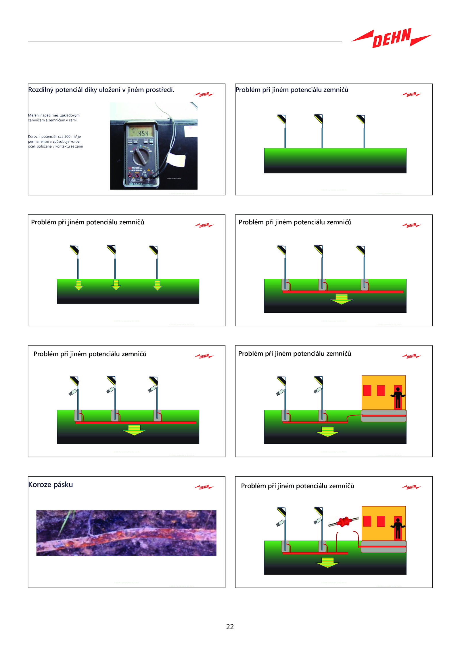 -Büro Biebl Rozdílný potenciál díky uložení jiném prostředí.22 © DEHN protected ISO 16016 © DEHN protected ISO 16016 Měření napětí mezi základovým zemničem zemničem zemi Korozní potenciál: cca 500 je permanentní způsobuje korozi oceli položené kontaktu zemí Quelle: Ing. © DEHN protected ISO 16016 © DEHN protected ISO 16016 Problém při jiném potenciálu zemničů © DEHN protected ISO 16016 © DEHN protected ISO 16016 Problém při jiném potenciálu zemničů © DEHN protected ISO 16016 © DEHN protected ISO 16016 Koroze pásku © DEHN protected ISO 16016 © DEHN protected ISO 16016 Problém při jiném potenciálu zemničů © DEHN protected ISO 16016 © DEHN protected ISO 16016 Problém při jiném potenciálu zemničů © DEHN protected ISO 16016 © DEHN protected ISO 16016 Problém při jiném potenciálu zemničů © DEHN protected ISO 16016 © DEHN protected ISO 16016 Problém při jiném potenciálu zemničů