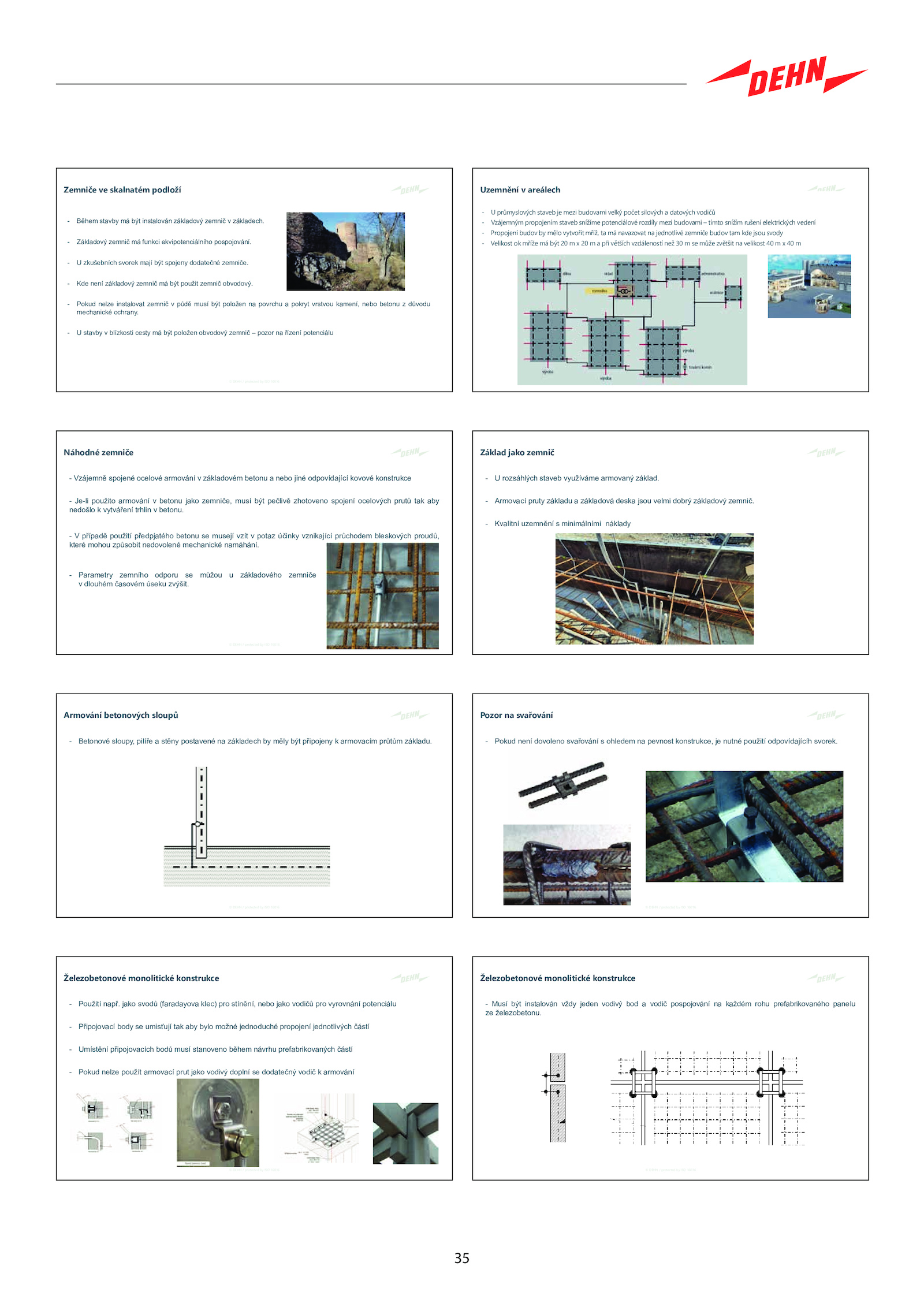 - Je-li použito armování betonu jako zemniče, musí být pečlivě zhotoveno spojení ocelových prutů tak aby