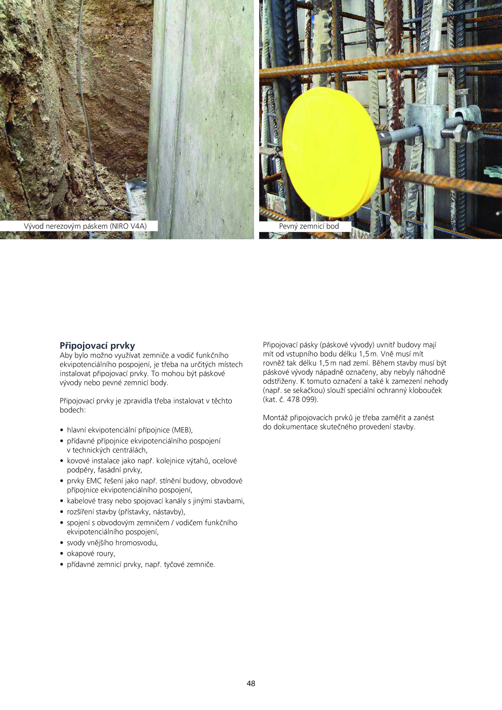 • kovové instalace jako např. tyčové zemniče. Během stavby musí být