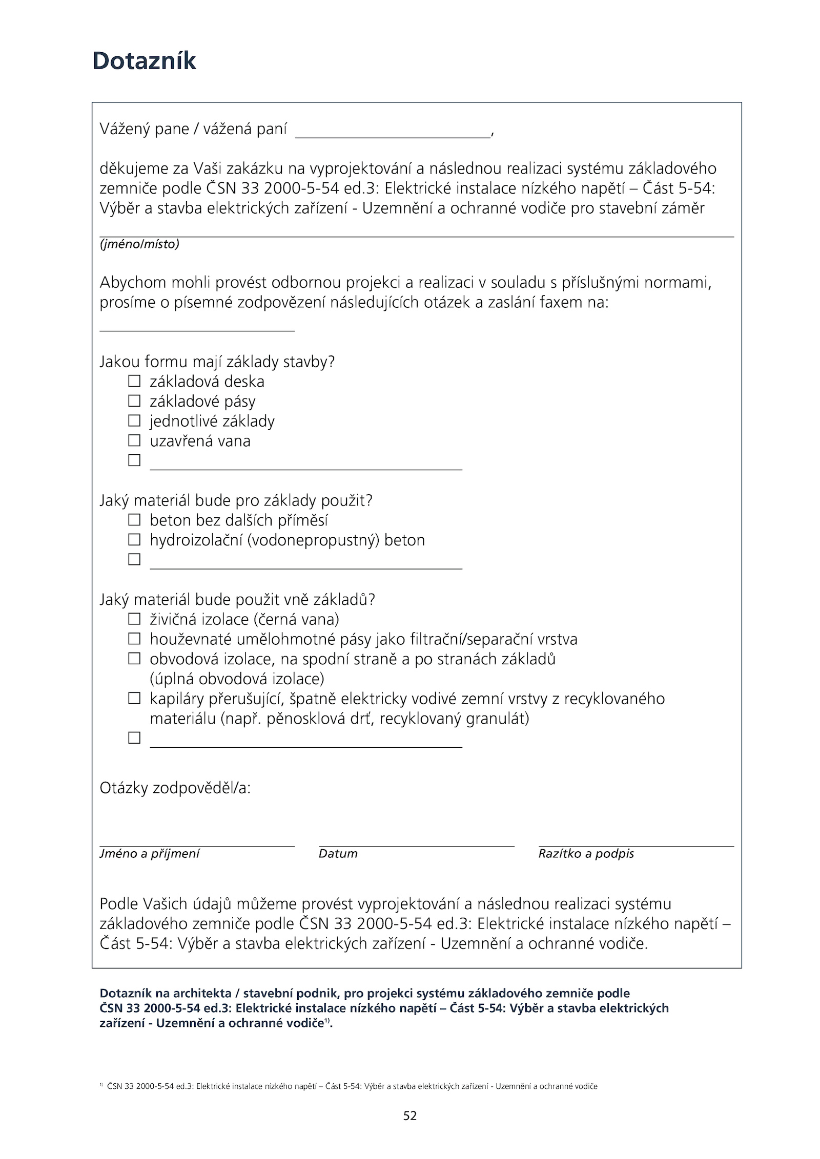 Dotazník architekta stavební podnik, pro projekci systému základového zemniče podle