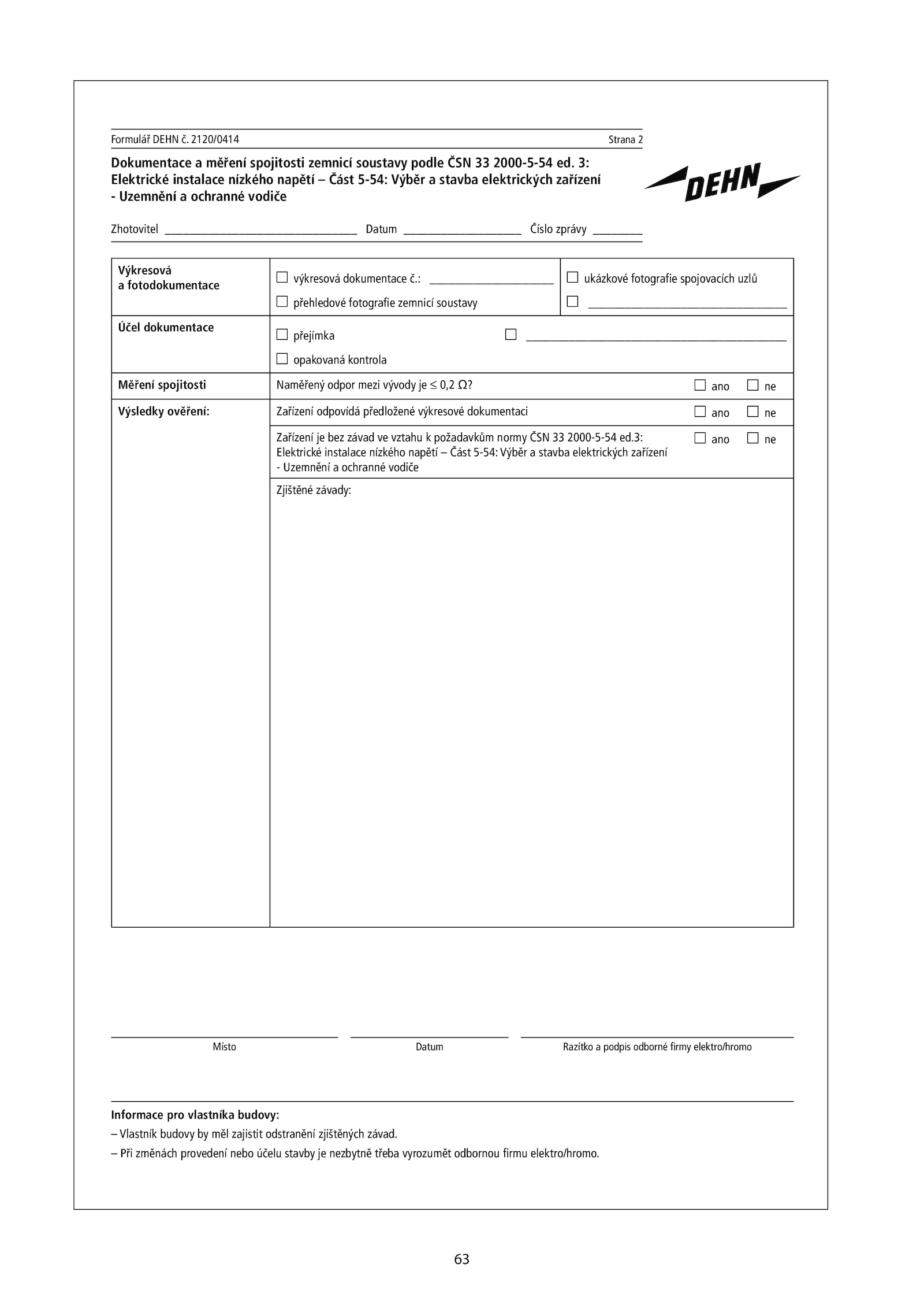 Dokumentace měření spojitosti zemnicí soustavy podle ČSN 2000-5-54 ed. 3: