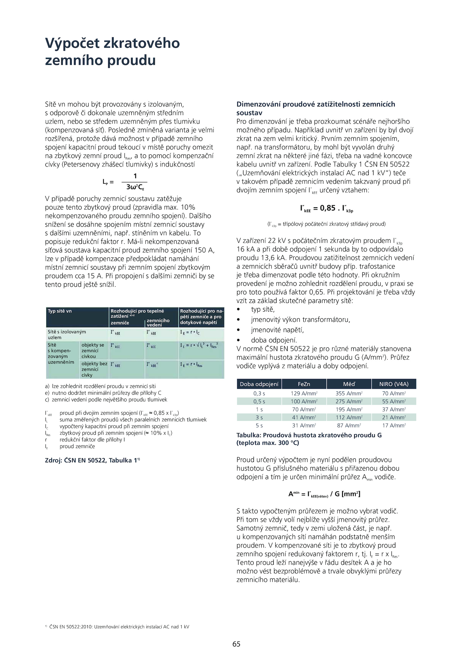 odpojení tím určen minimální průřez Amin vodiče. Proudovou zatižitelnost zemnicích vedení