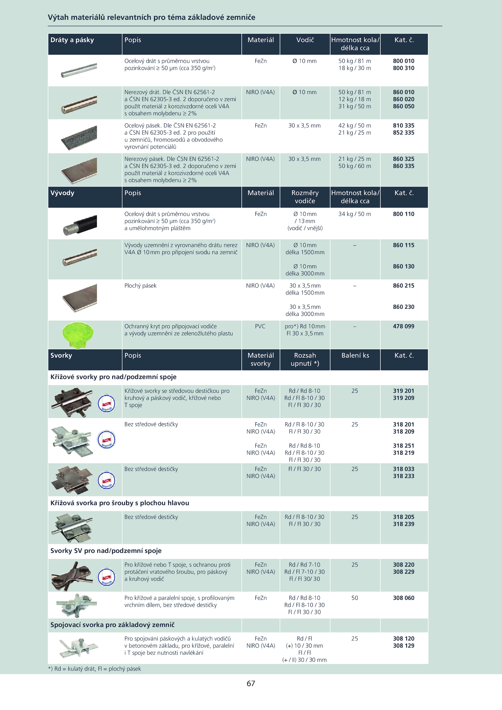 Vývody uzemnění vyrovnaného drátu nerez