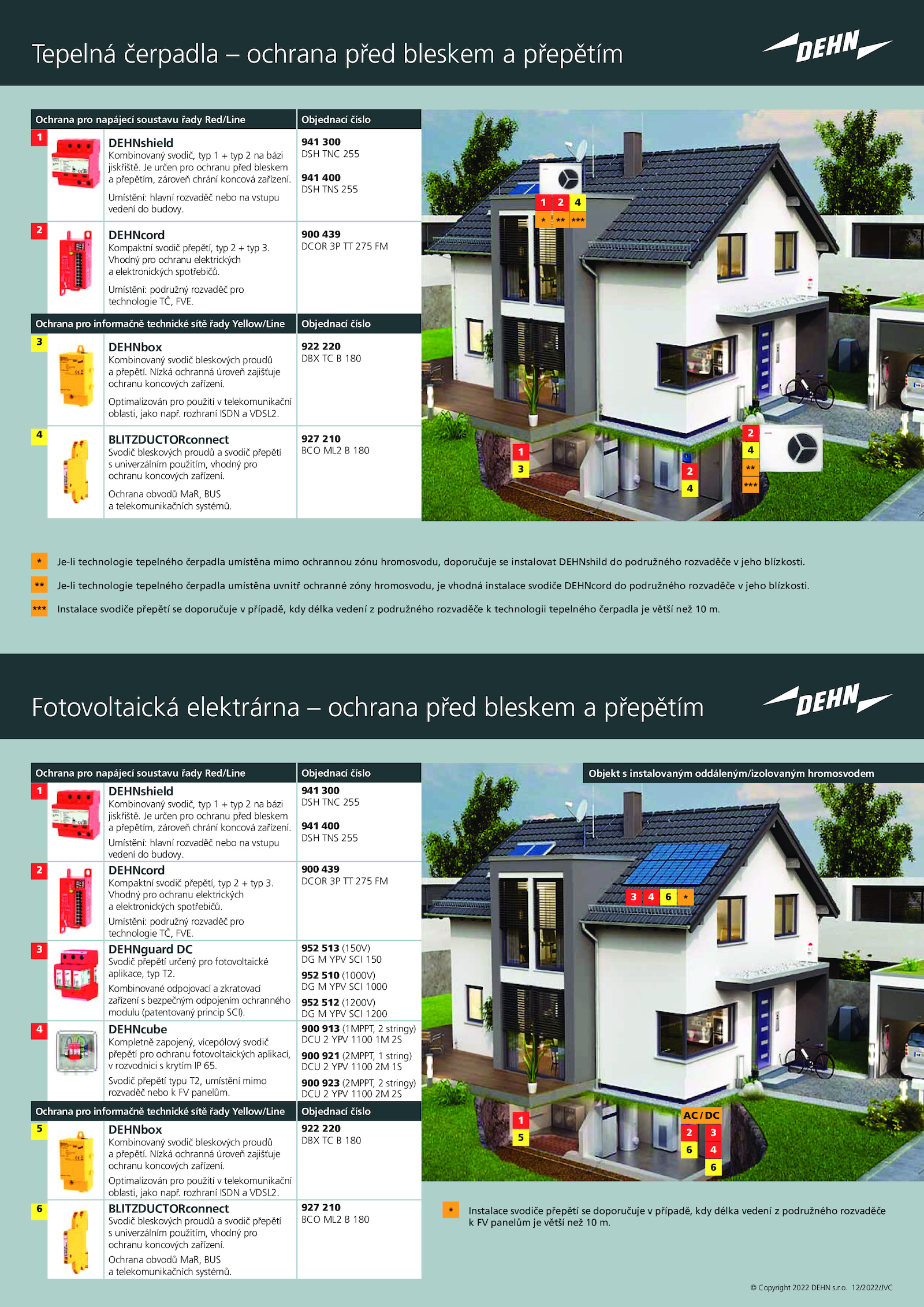 Je-li technologie tepelného čerpadla umístěna mimo ochrannou zónu hromosvodu, doporučuje instalovat DEHNshild podružného rozvaděče jeho blízkosti. určen pro ochranu před bleskem