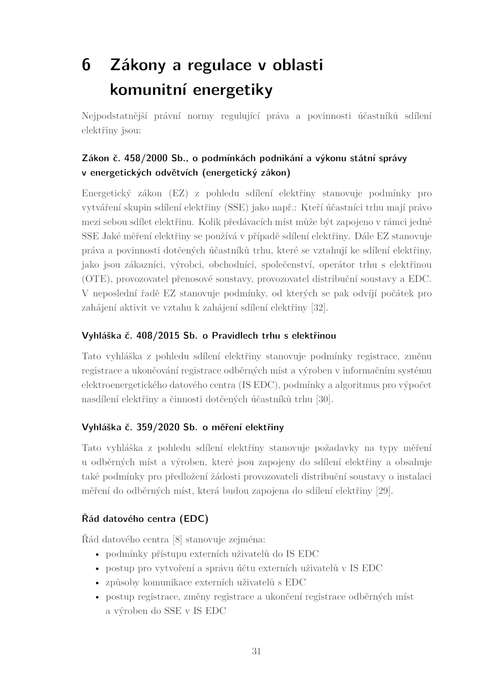 zahájení aktivit vztahu zahájení sdílení elektřiny [32].Zákony regulace oblasti