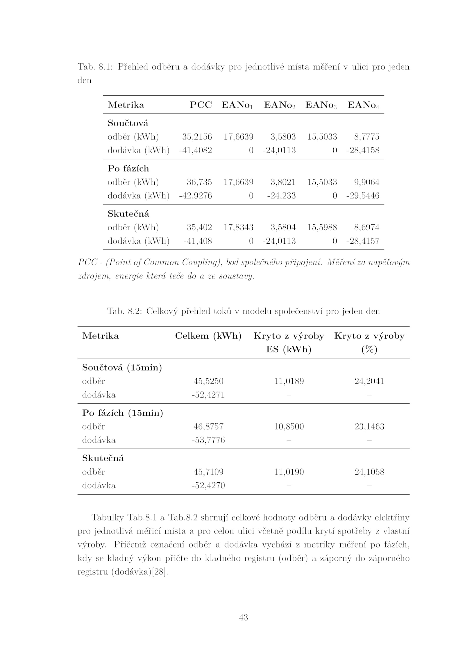 výroby. 8.8.1: Přehled odběru dodávky pro jednotlivé místa měření ulici pro jeden