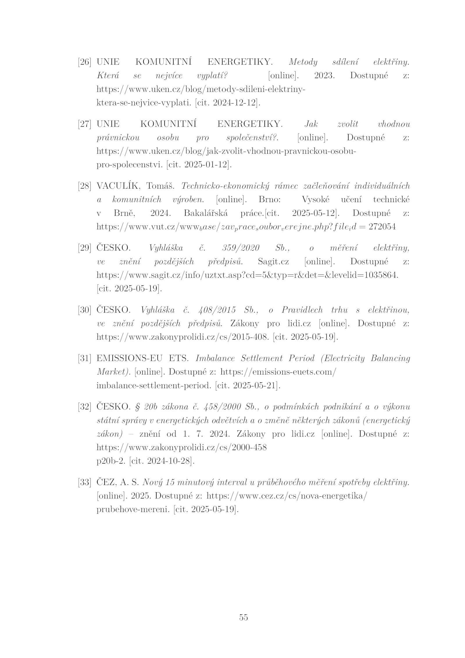 v Brně, 2024.zakonyprolidi. Zákony pro lidi. [cit. Bakalářská práce.cz/cs/2015-408.[26] UNIE KOMUNITNÍ ENERGETIKY.