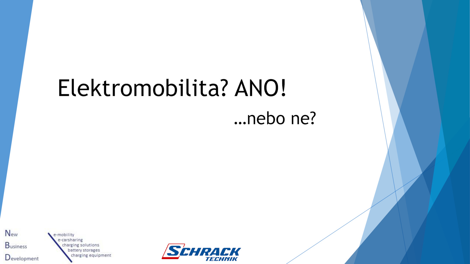 #190271 INFO dny Schrack ... "... uvádět v prezentaci o elektromobilitě výkony, příkony, technické parametry je k ničemu. Zmiňuji se o pojmech, které elektromobilitu určují ... první vozidlo, které pokořilo 100km/hod. byl v roce 1899 elektromobil ... proč je důležité v problematice elektromobility více skutečnost, kolik energie vyvážíme, než vyrobíme ... v čem je elektromobil lepší, když ho napájíme elektrikou ze spáleného uhlí ... o kolik se v ČR zvýší spotřeba elektrické energie, pokud najednou přibude jeden milion elektromobilů ... co na to odpoví naše přenosová soustava ... elektromobilita je pouze další stupeň mobility ... carsharing bez elektromobilů nebude povolen ... jak se autonomní vozidla dorozumí s vozidly konvenčními ... nemalujte Babiše na zeď! ... "