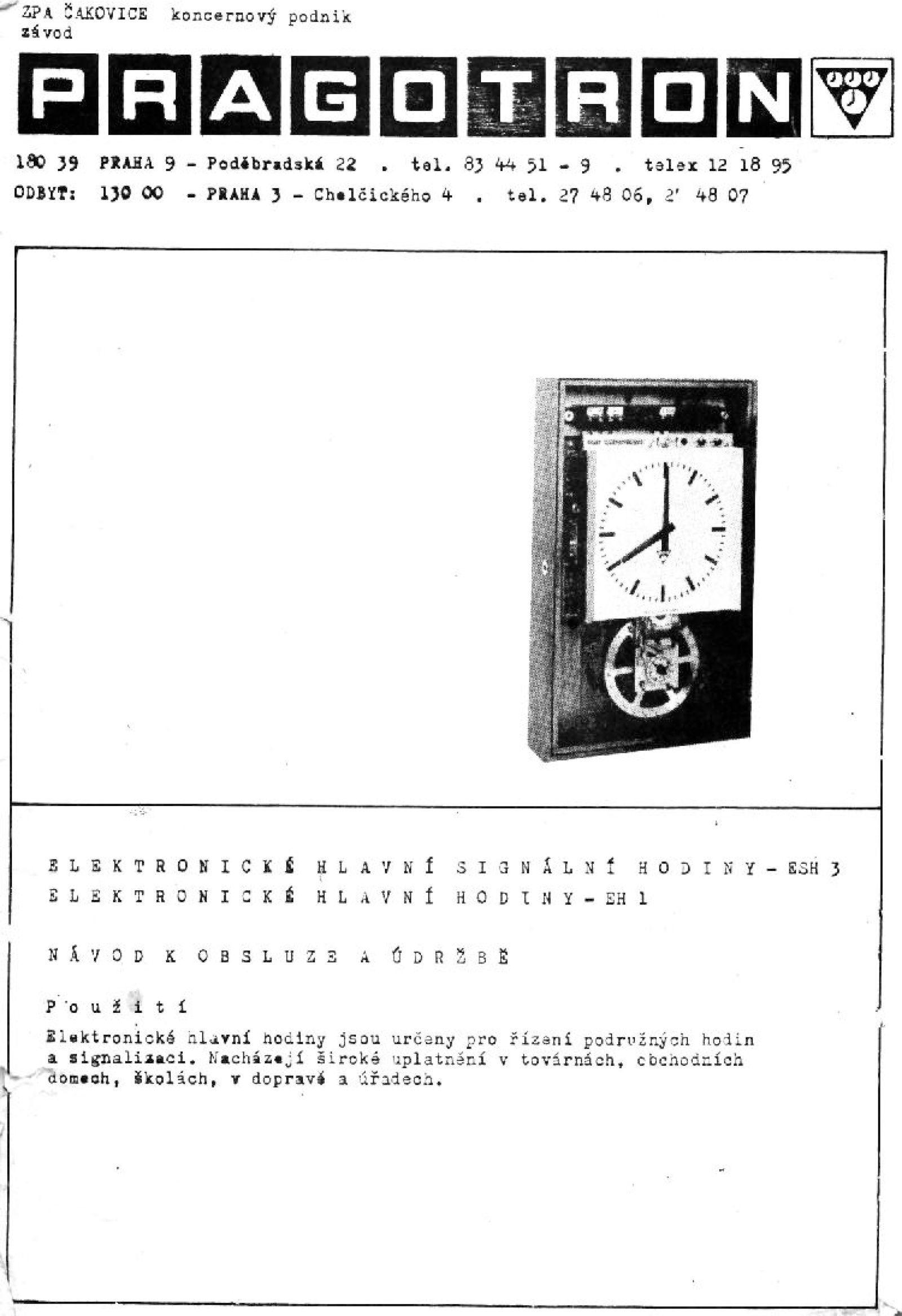Elektronické hlavní signální hodiny Pragotron