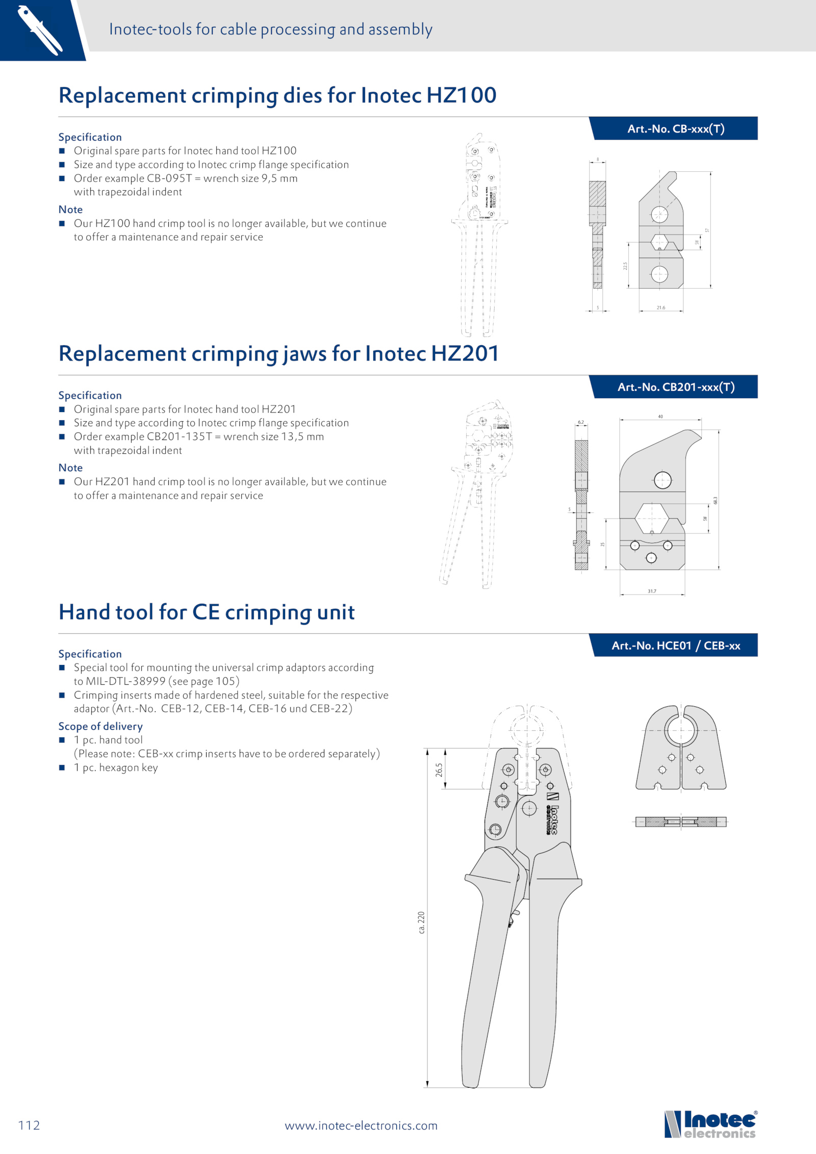 Replacement crimping dies for Inotec HZ100