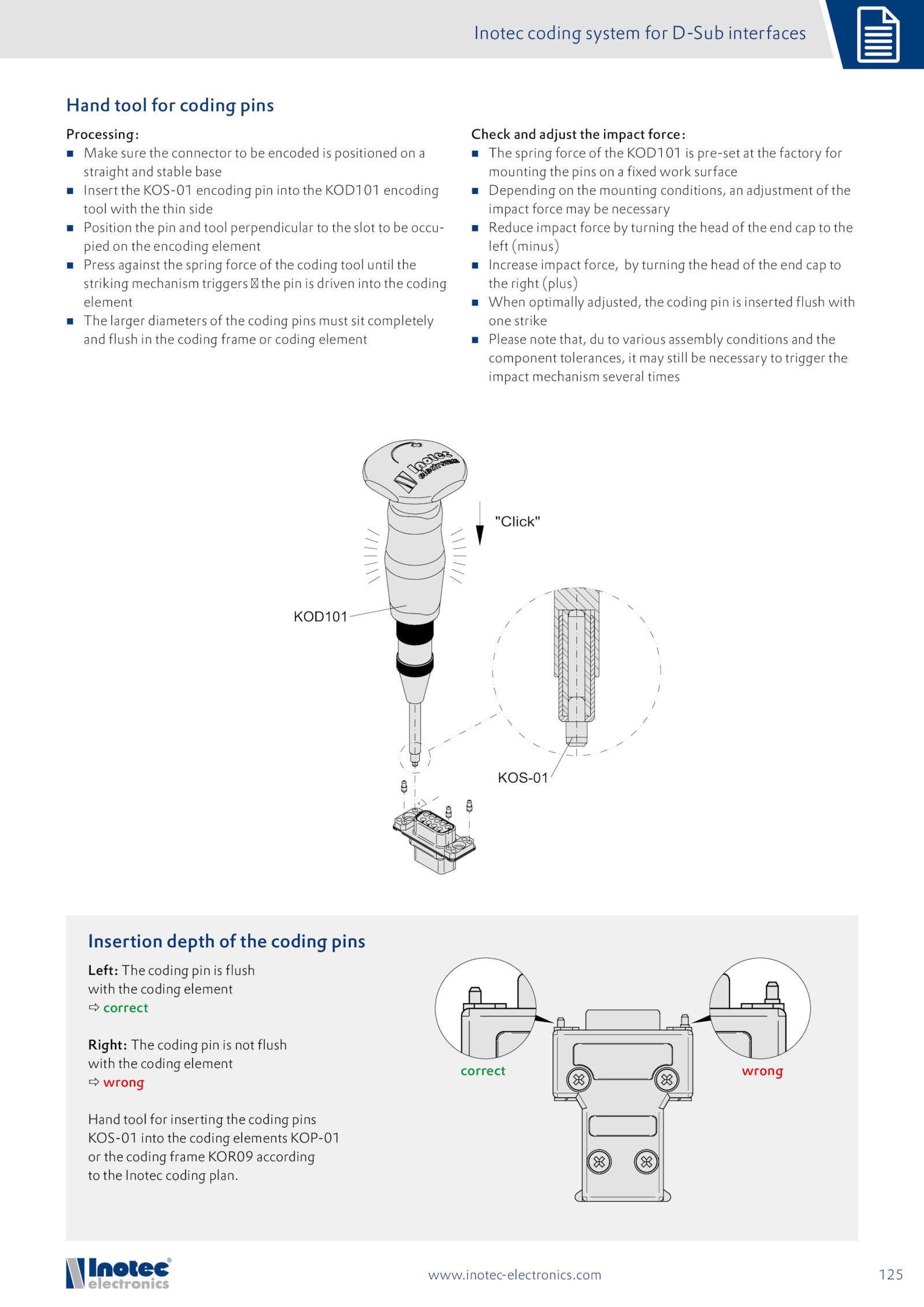 Insertion depth the coding pins