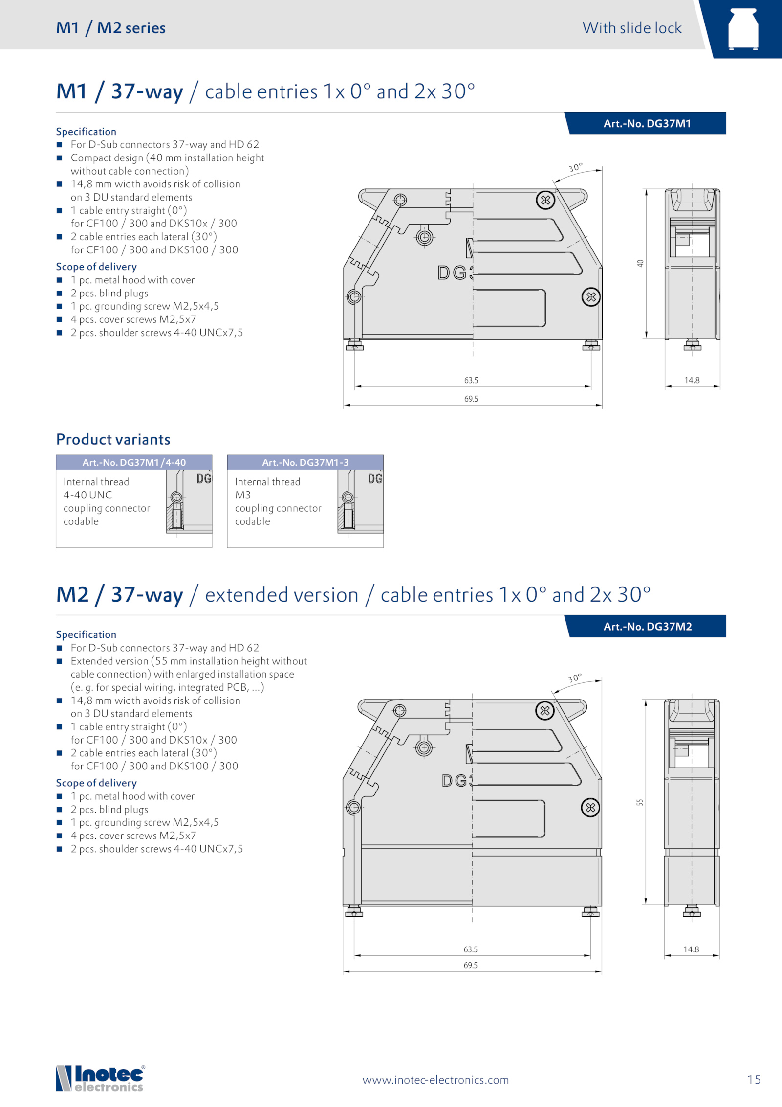 M2 37-way extended version cable entries and 30°