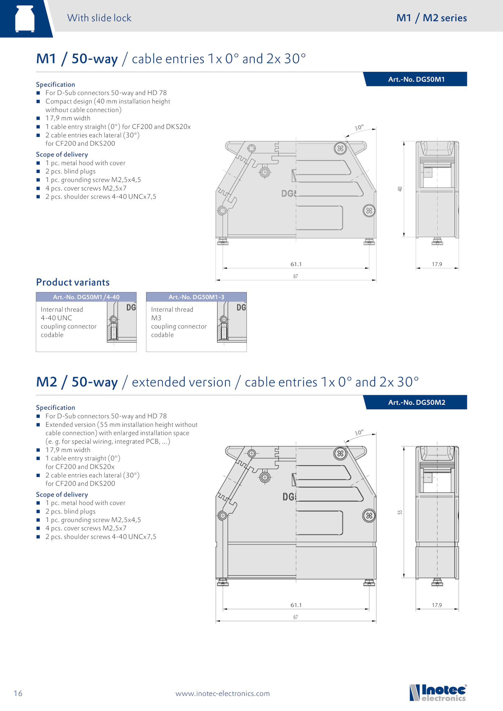 M2 50-way extended version cable entries and 30°