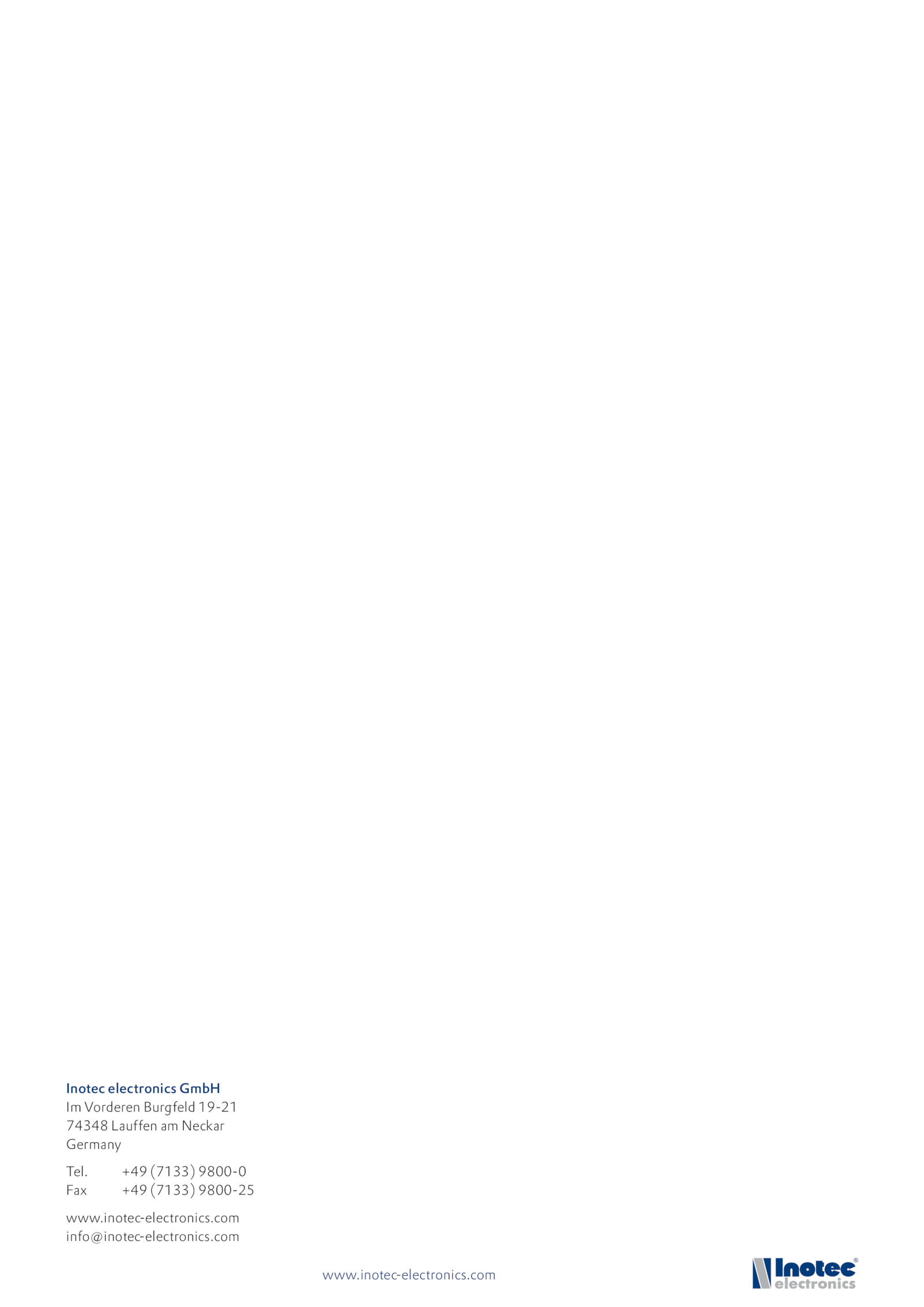 com www.Inotec electronics GmbH Im Vorderen Burgfeld 19-21 74348 Lauffen Neckar Germany Tel.inotec-electronics. +49 (7133) 9800-0 Fax +49 (7133) 9800-25 www.com info@inotec-electronics.com .inotec-electronics