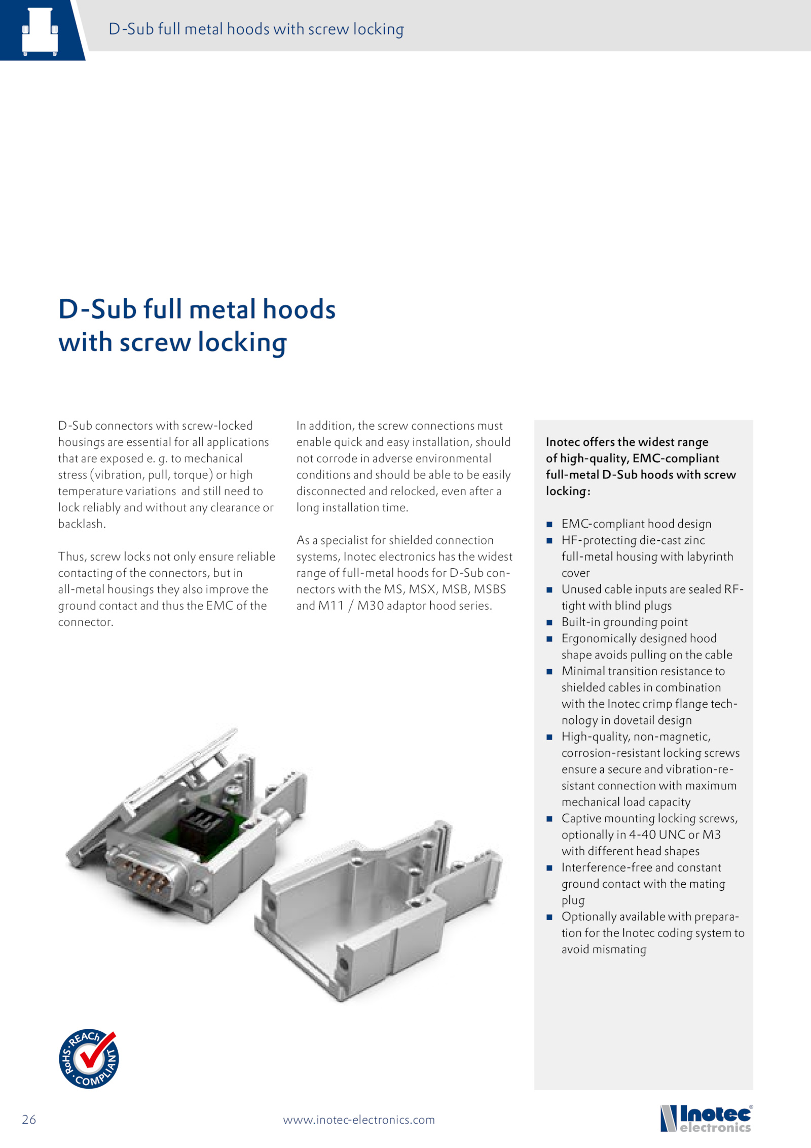 full-metal D-Sub hoods with screw