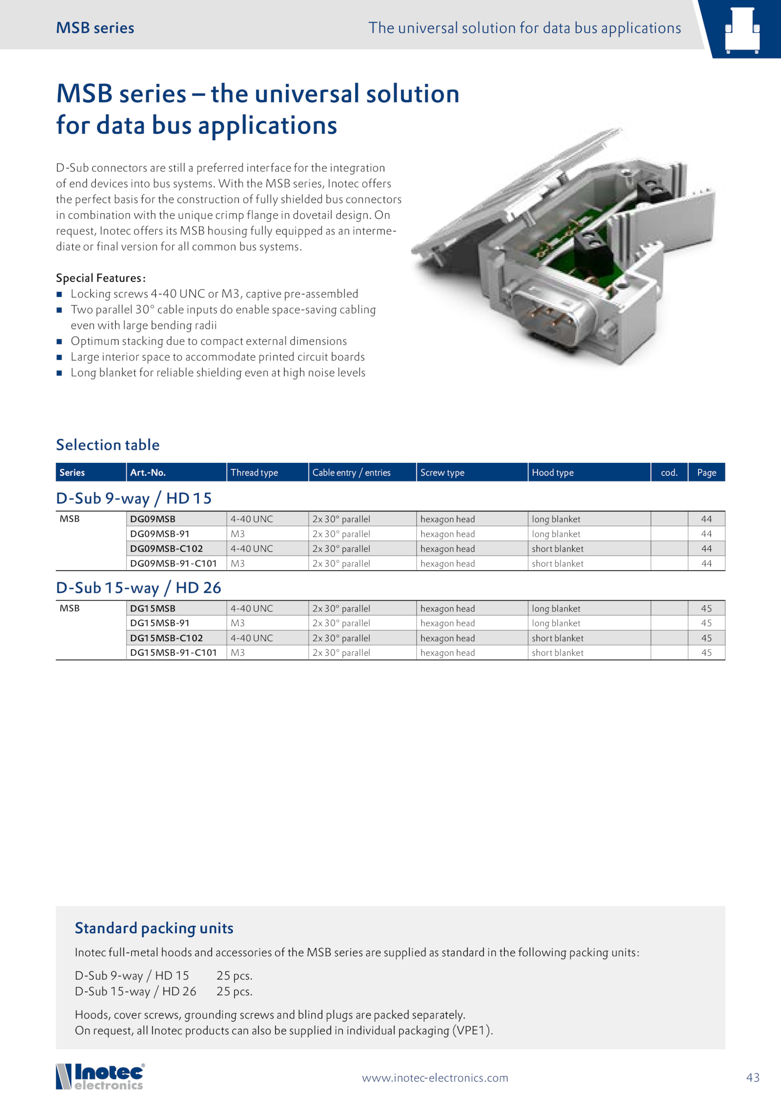 On request, all Inotec products can also supplied individual packaging (VPE1). With the MSB series, Inotec offers