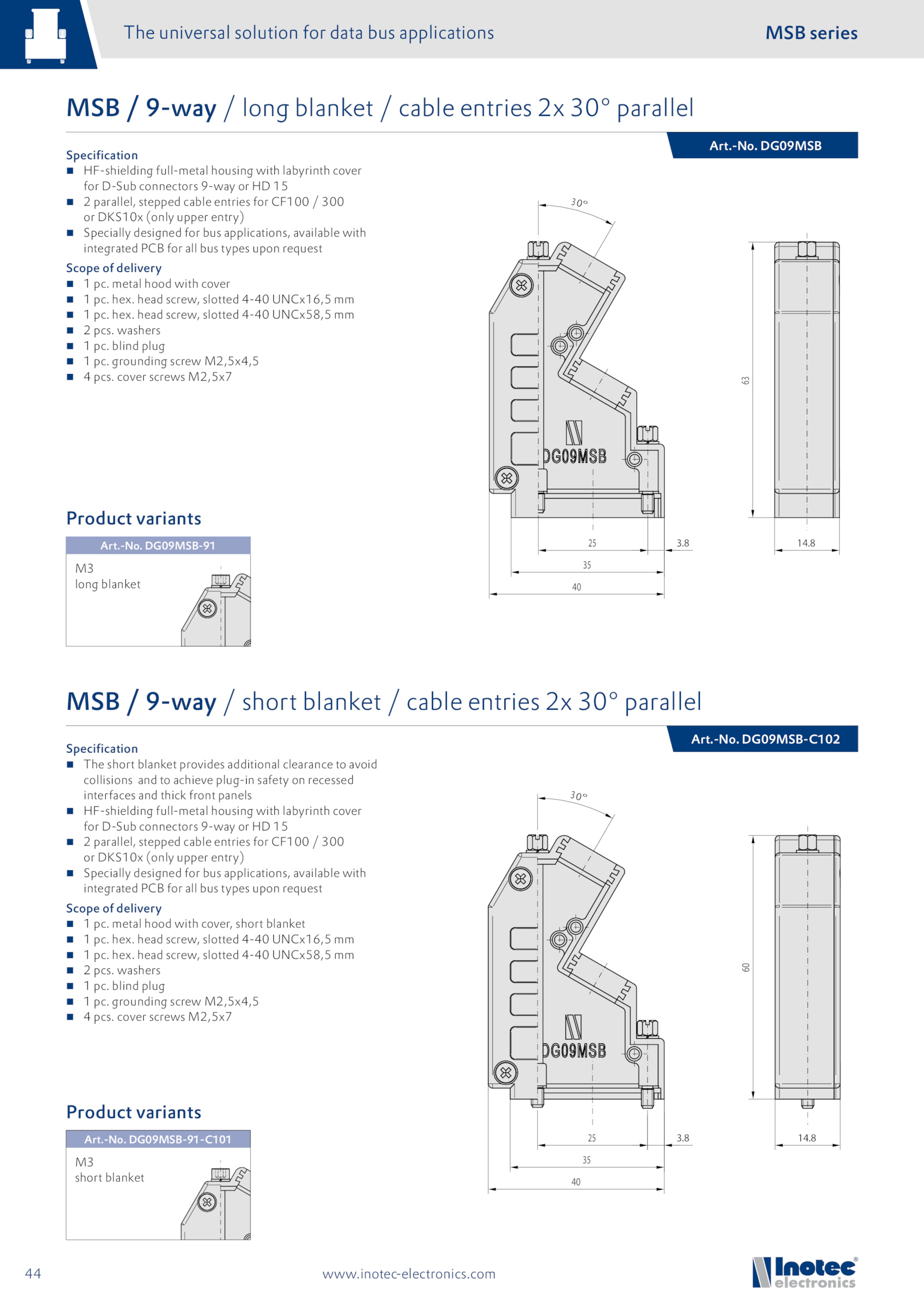 MSB 9-way short blanket cable entries 30° parallel
