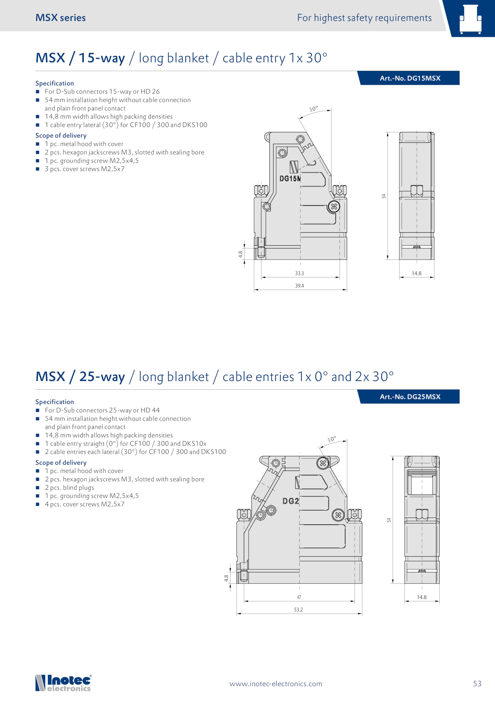 MSX 25-way long blanket cable entries and 30°