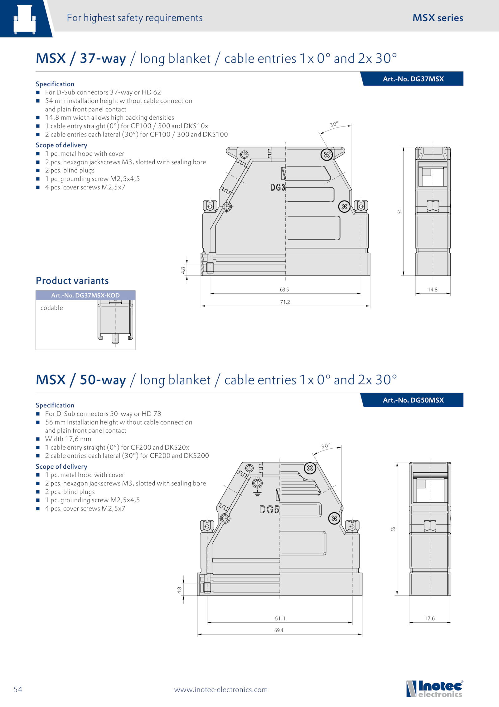 cable entries each lateral (30°) for CF100 300 and DKS100