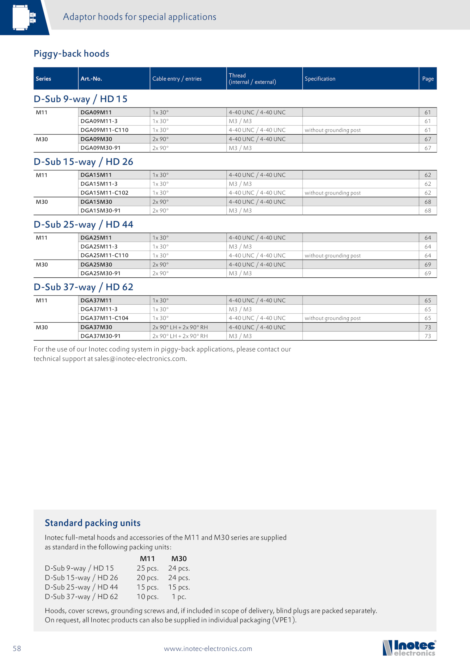 Inotec full-metal hoods and accessories the M11 and M30 series are supplied