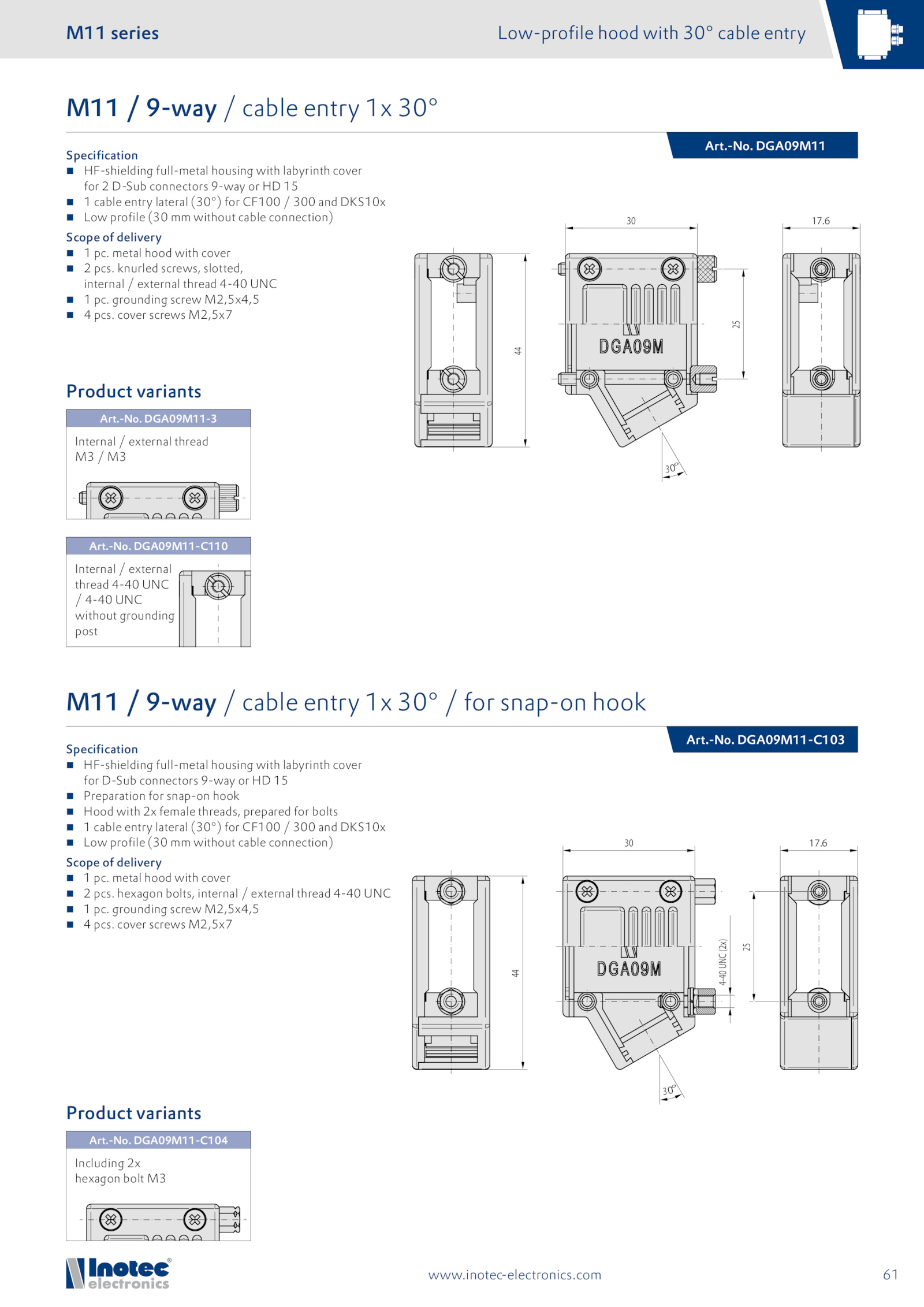 M11 9-way cable entry 30°
