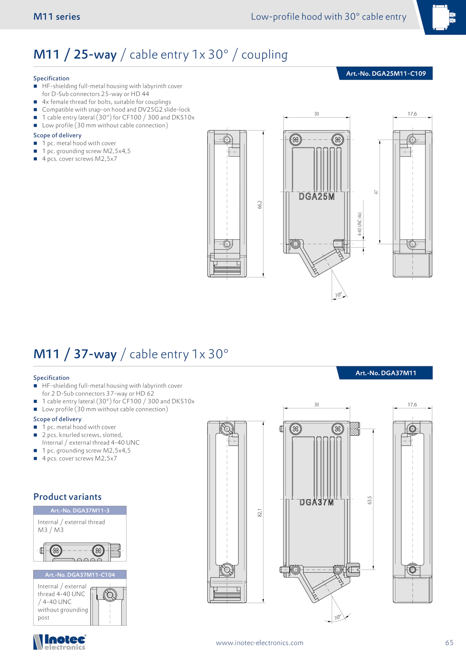 M11 37-way cable entry 30°