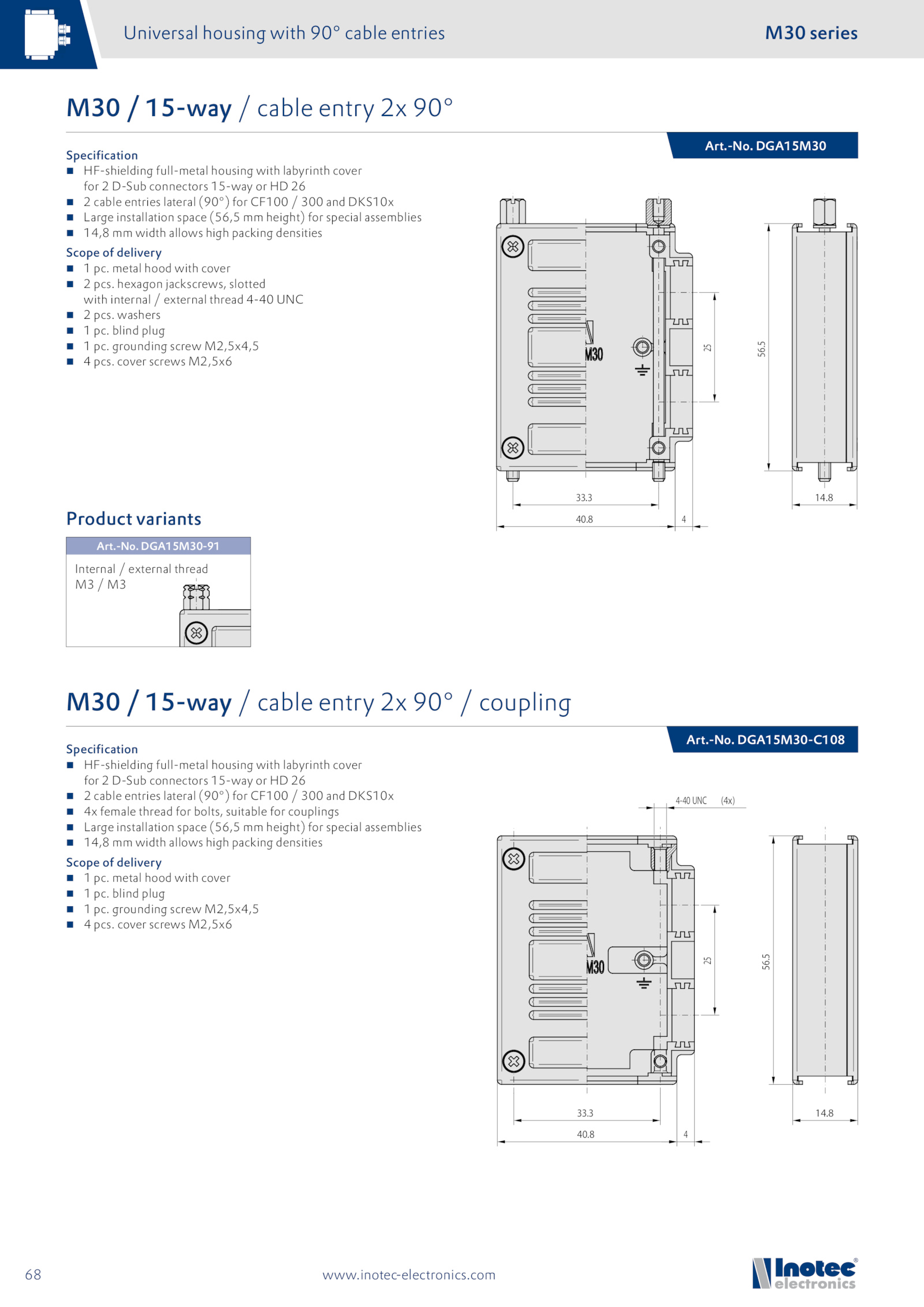 Universal housing with 90° cable entries M30 series