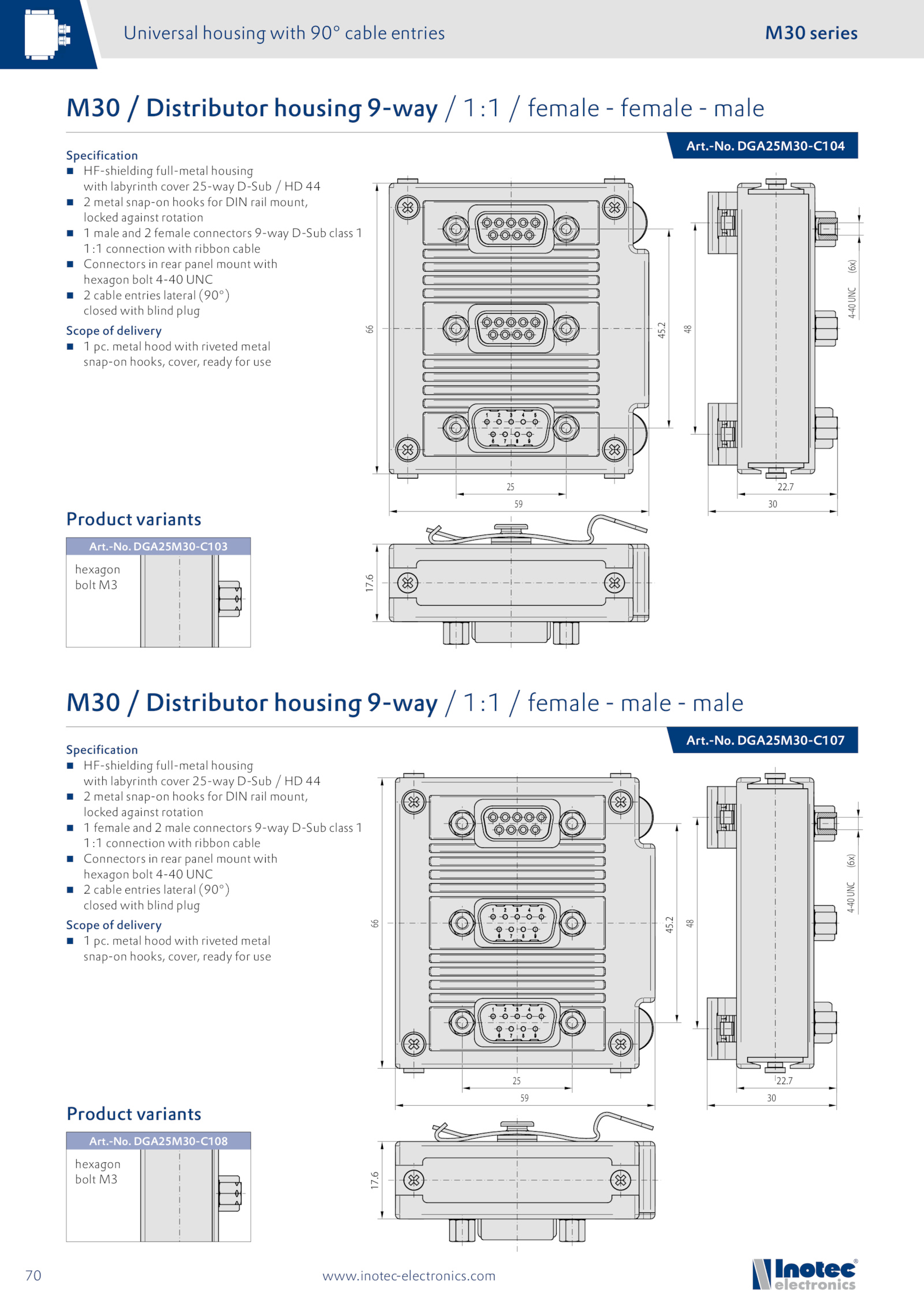 Universal housing with 90° cable entries M30 series
