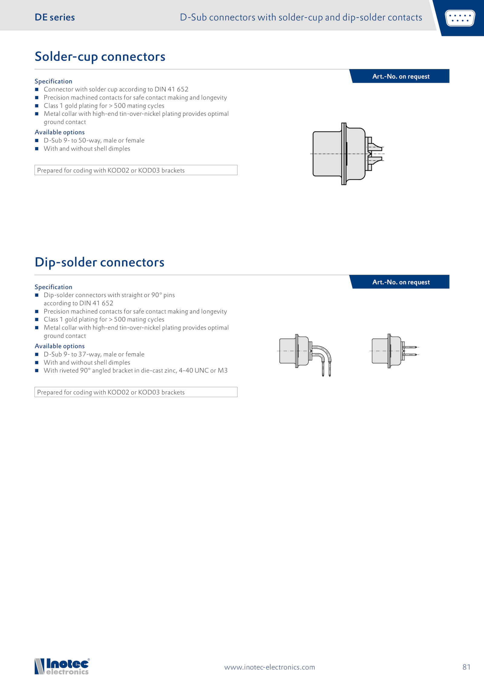 D-Sub connectors with solder-cup and dip-solder contacts