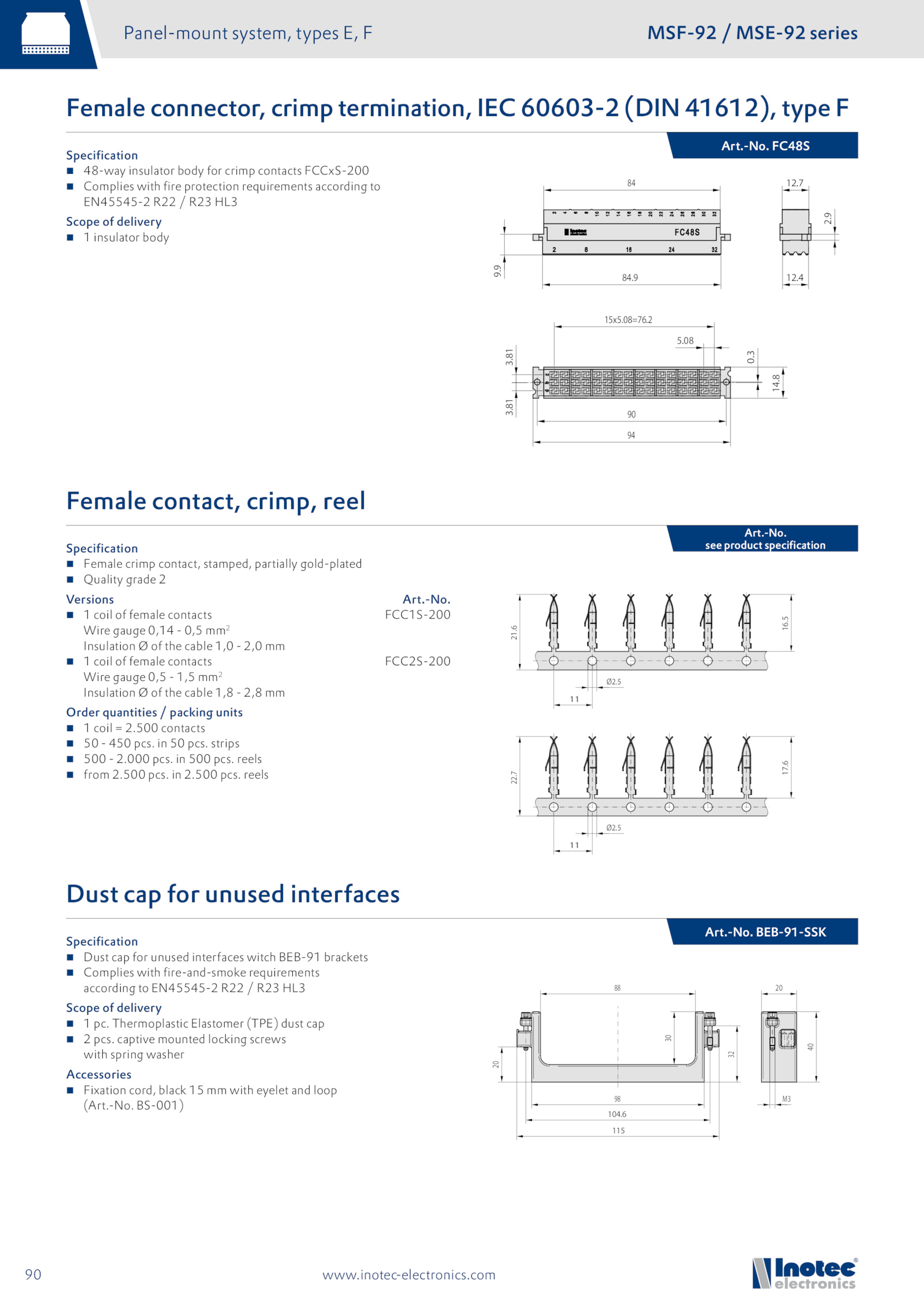 Female connector, crimp termination, IEC 60603-2 (DIN 41612), type F