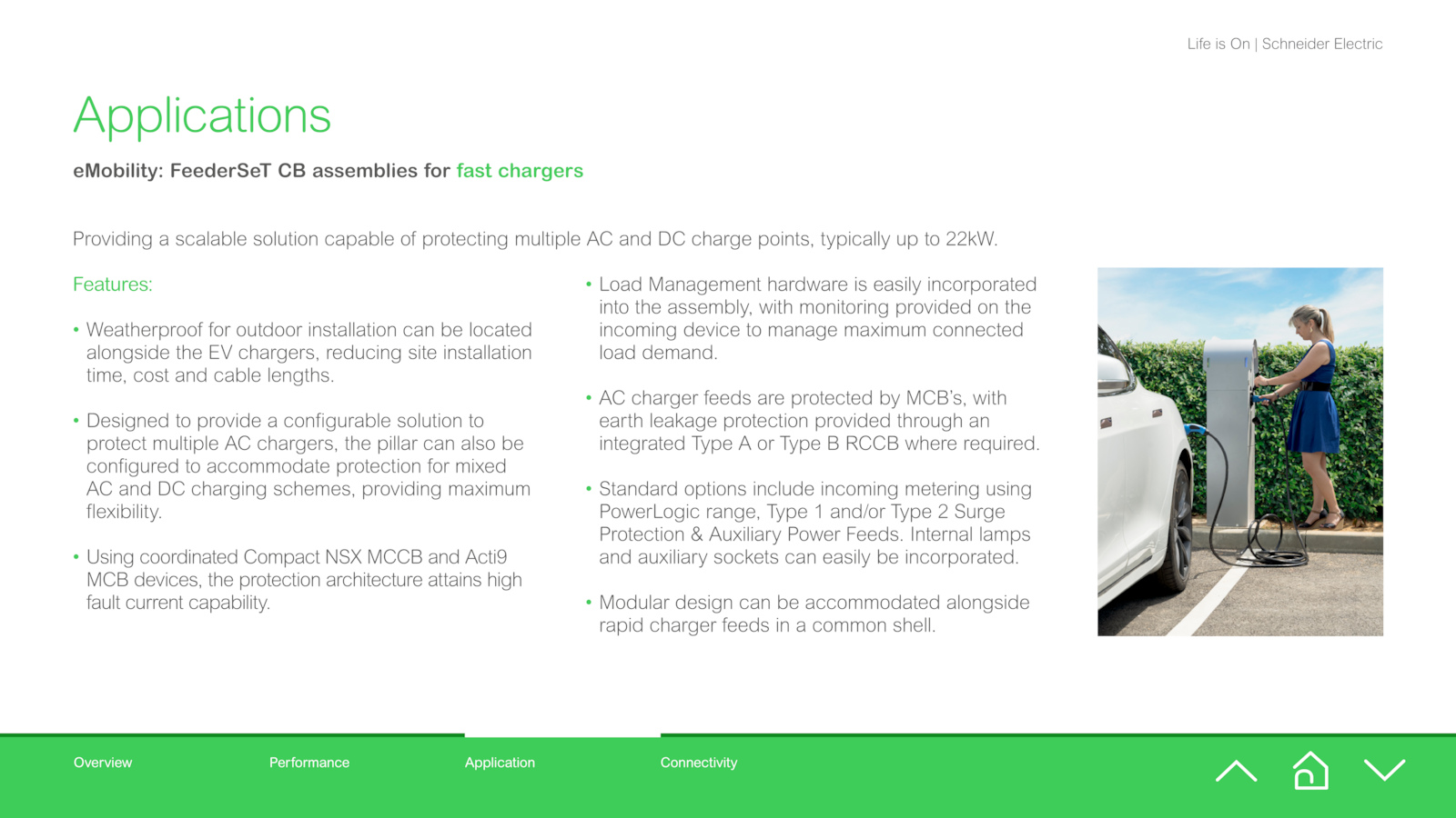 Providing scalable solution capable protecting multiple and charge points, typically 22kW.