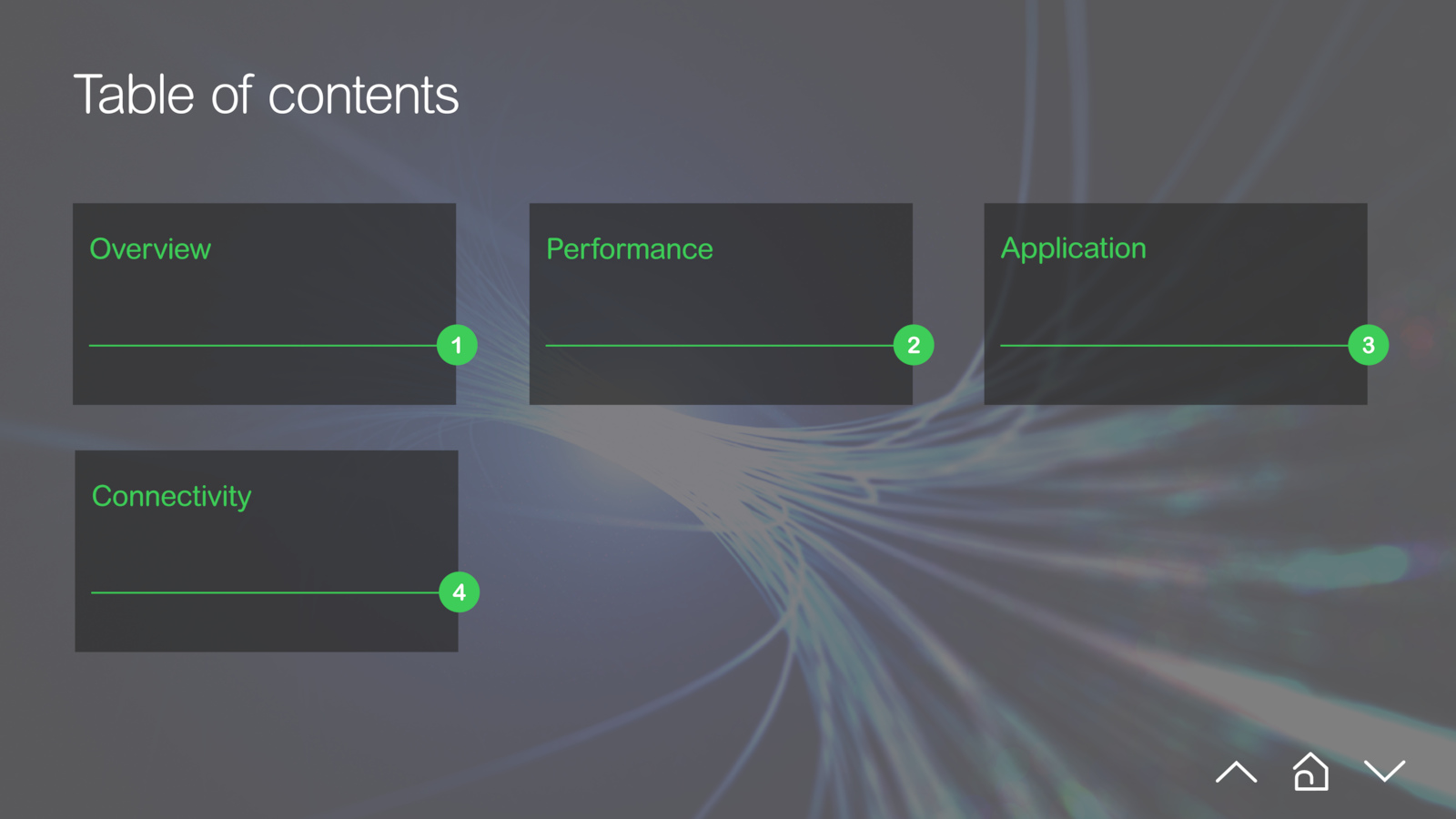 Table contents Application 3 Performance 2 Overview 1 Connectivity 4
