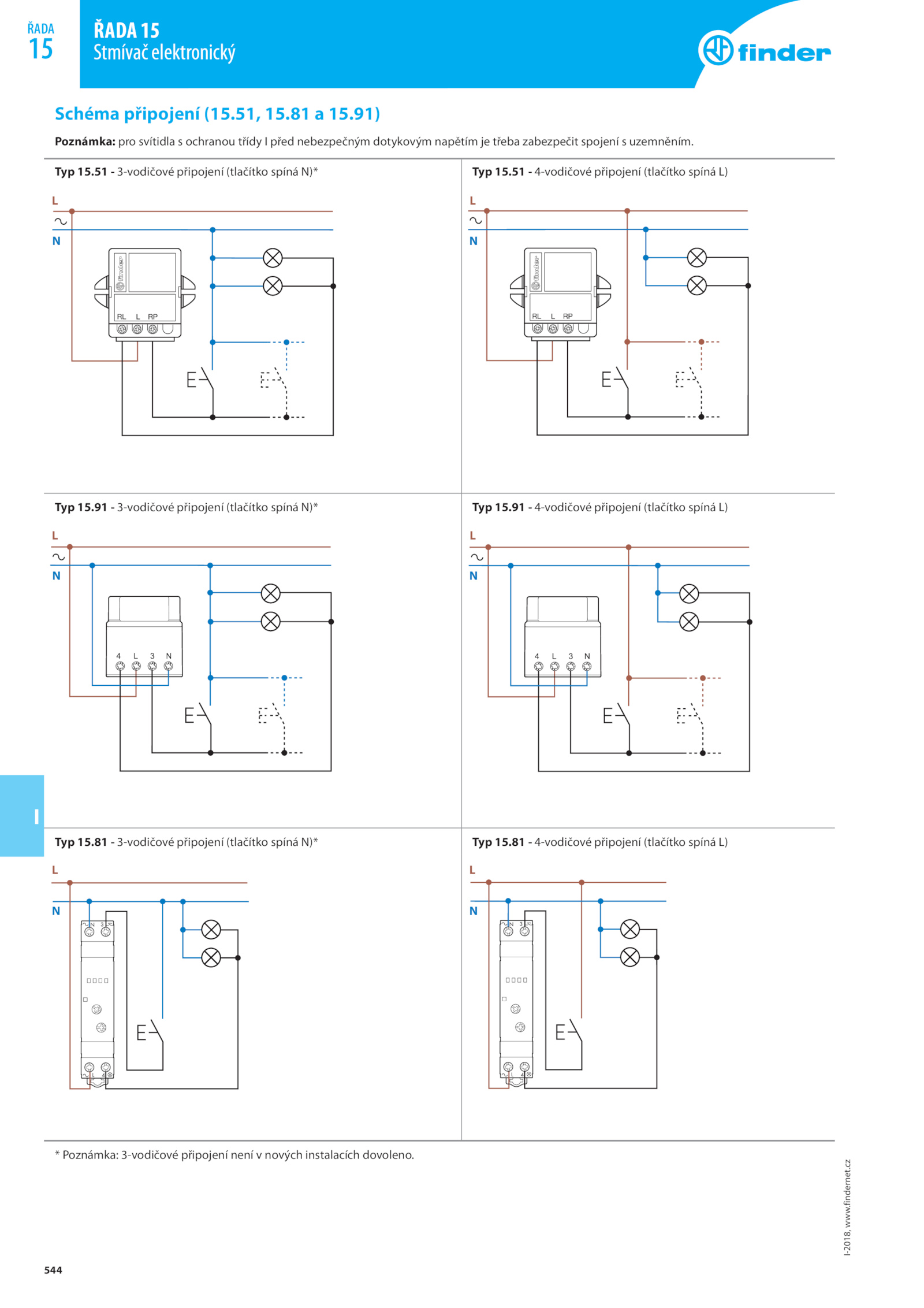Typ 15.51 3-vodičové připojení (tlačítko spíná N)* Typ 15.81 3-vodičové připojení (tlačítko spíná N)* Typ 15.findernet.81 15
