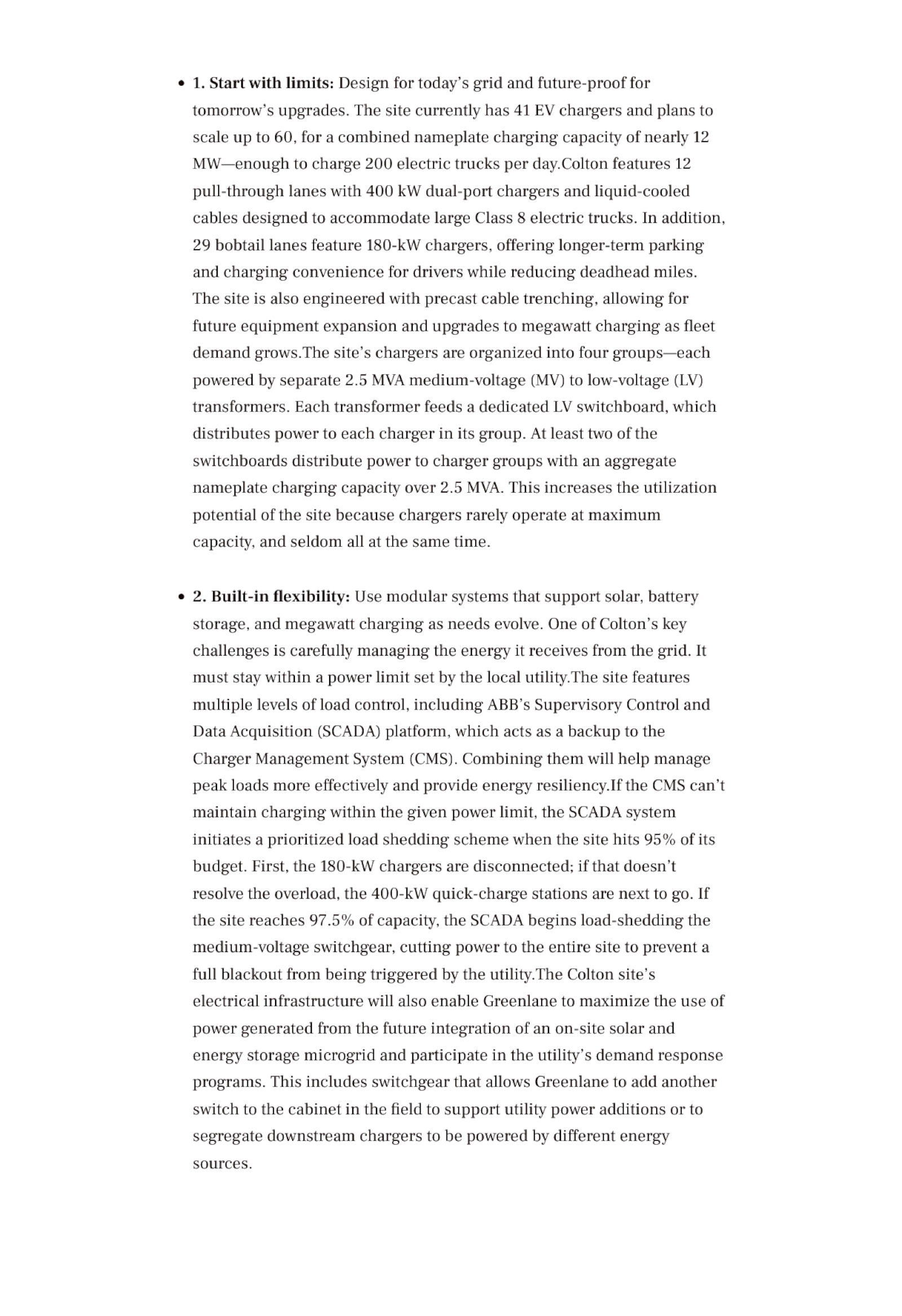 resolve the overload, the 400-kW quick-charge stations are next go. One Colton’s key