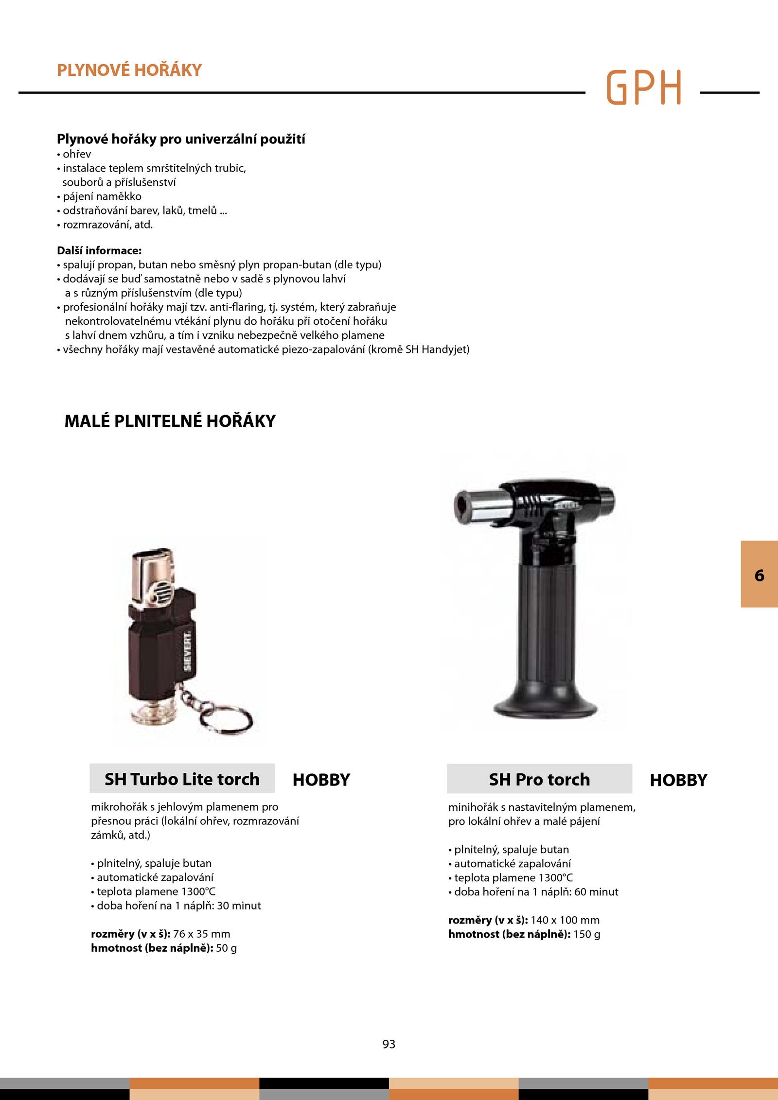 • všechny hořáky mají vestavěné automatické piezo-zapalování (kromě Handyjet)