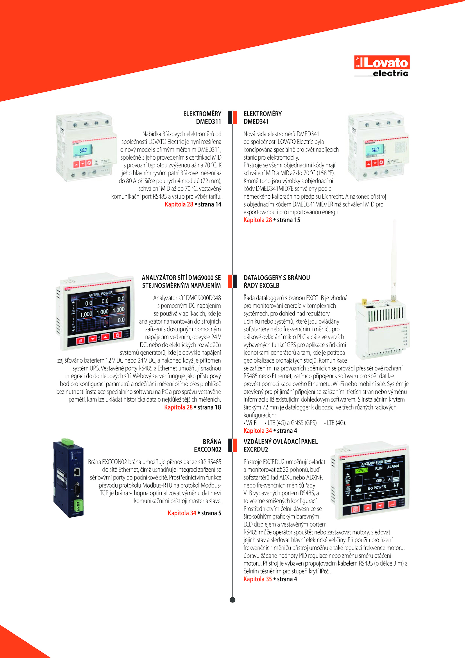 jejich stav sledovat hlavní elektrické veličiny. Přístroj vybaven propojovacím kabelem RS485 délce a
