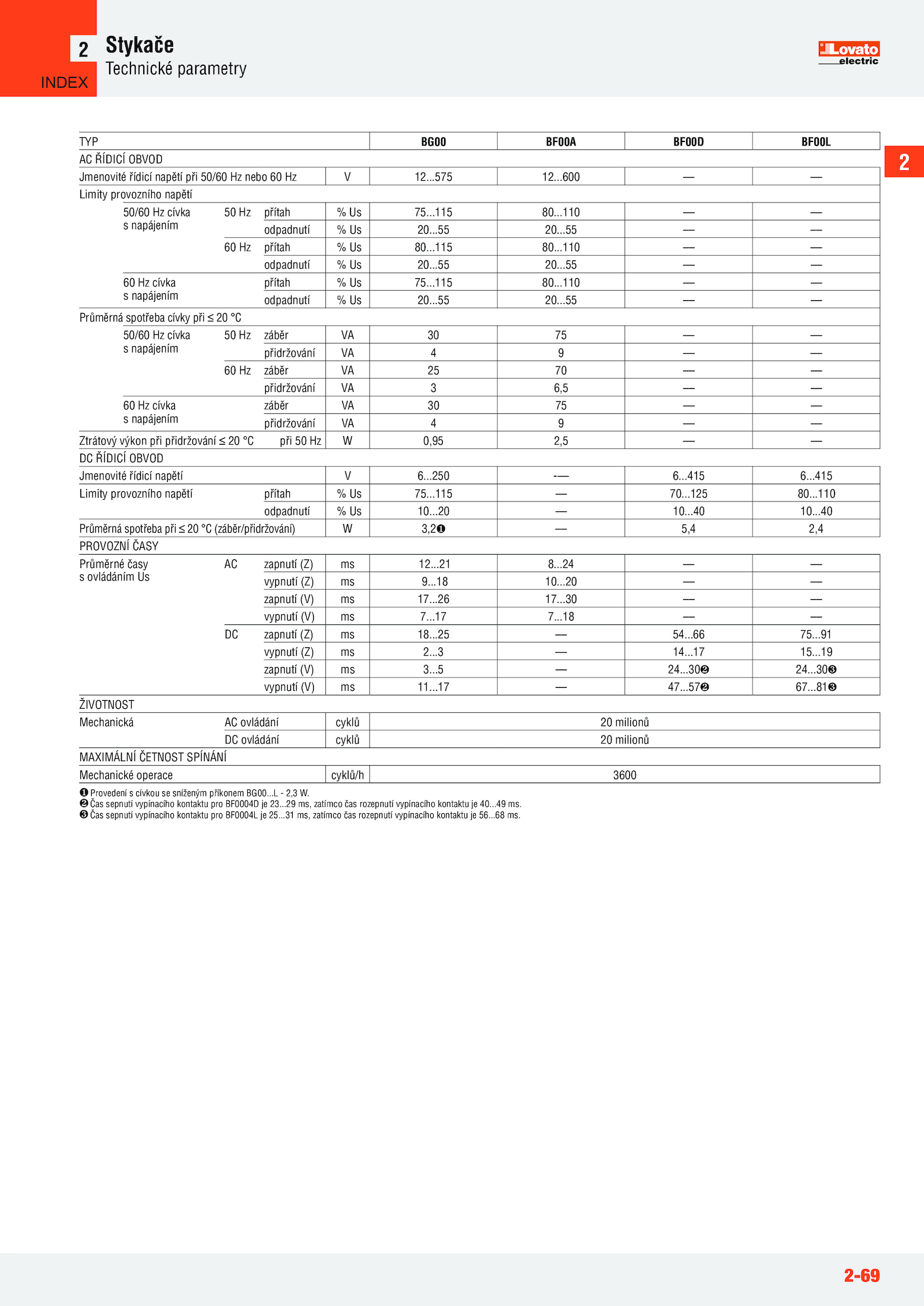 Čas sepnutí vypínacího kontaktu pro BF0004L 25.415 6.49 ms.....115 80.125 80...55 ––