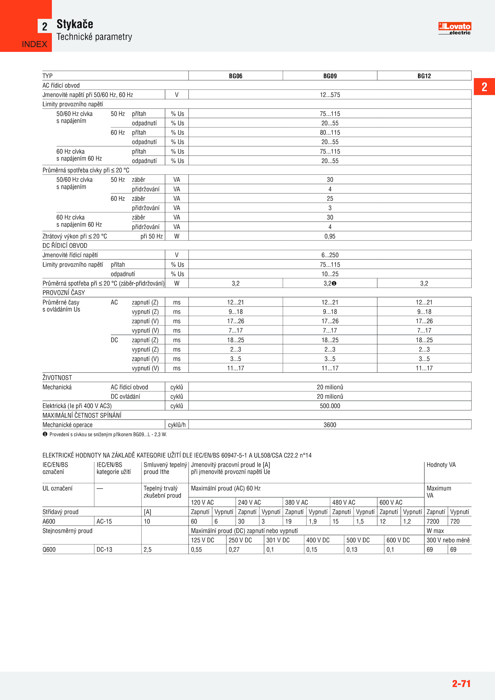 ELEKTRICKÉ HODNOTY ZÁKLADĚ KATEGORIE UŽITÍ DLE IEC/EN/BS 60947-5-1 UL508/CSA C22.26 17.5