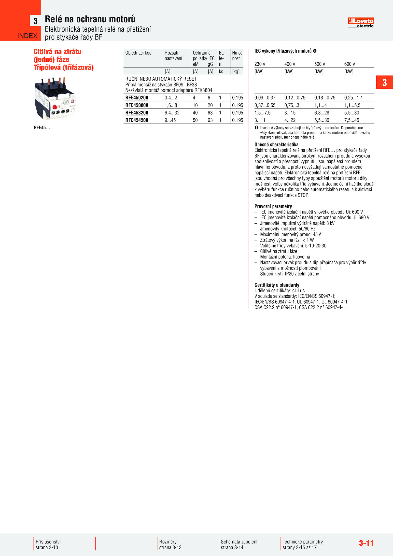 CSA C22.0,55 0,75.4 1,1. Elektronická tepelná relé přetížení RFE