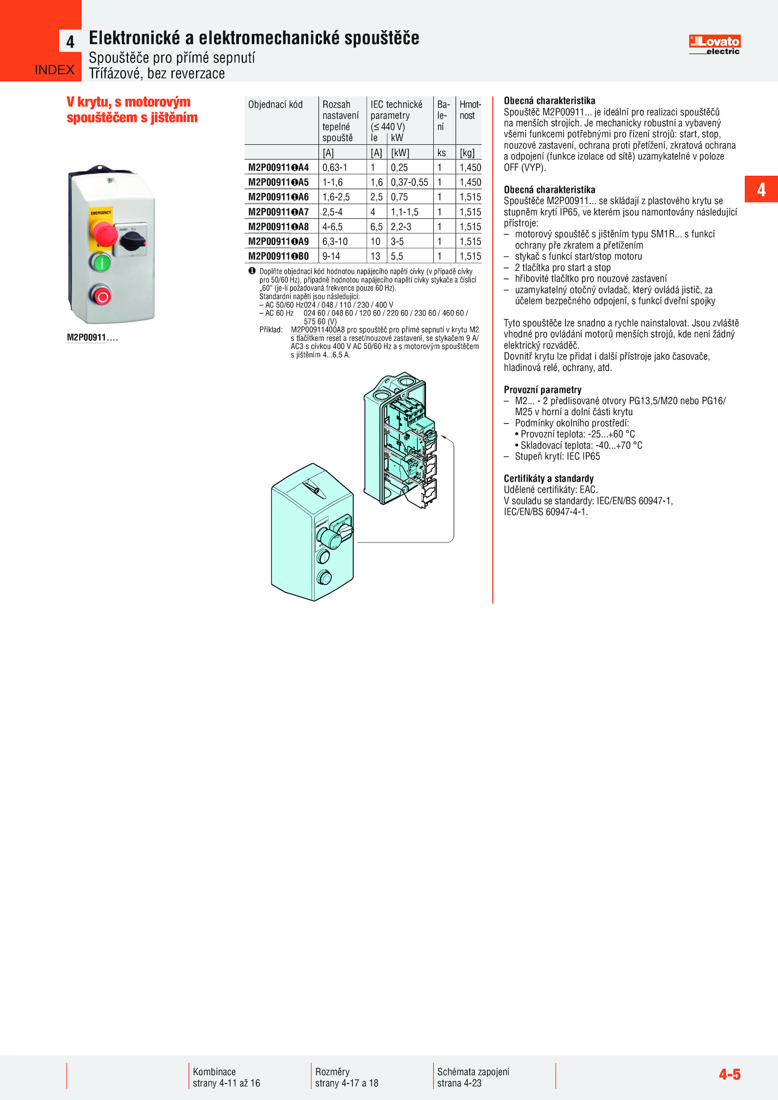 Příklad: M2P00911400A8 pro spouštěč pro přímé sepnutí krytu M2