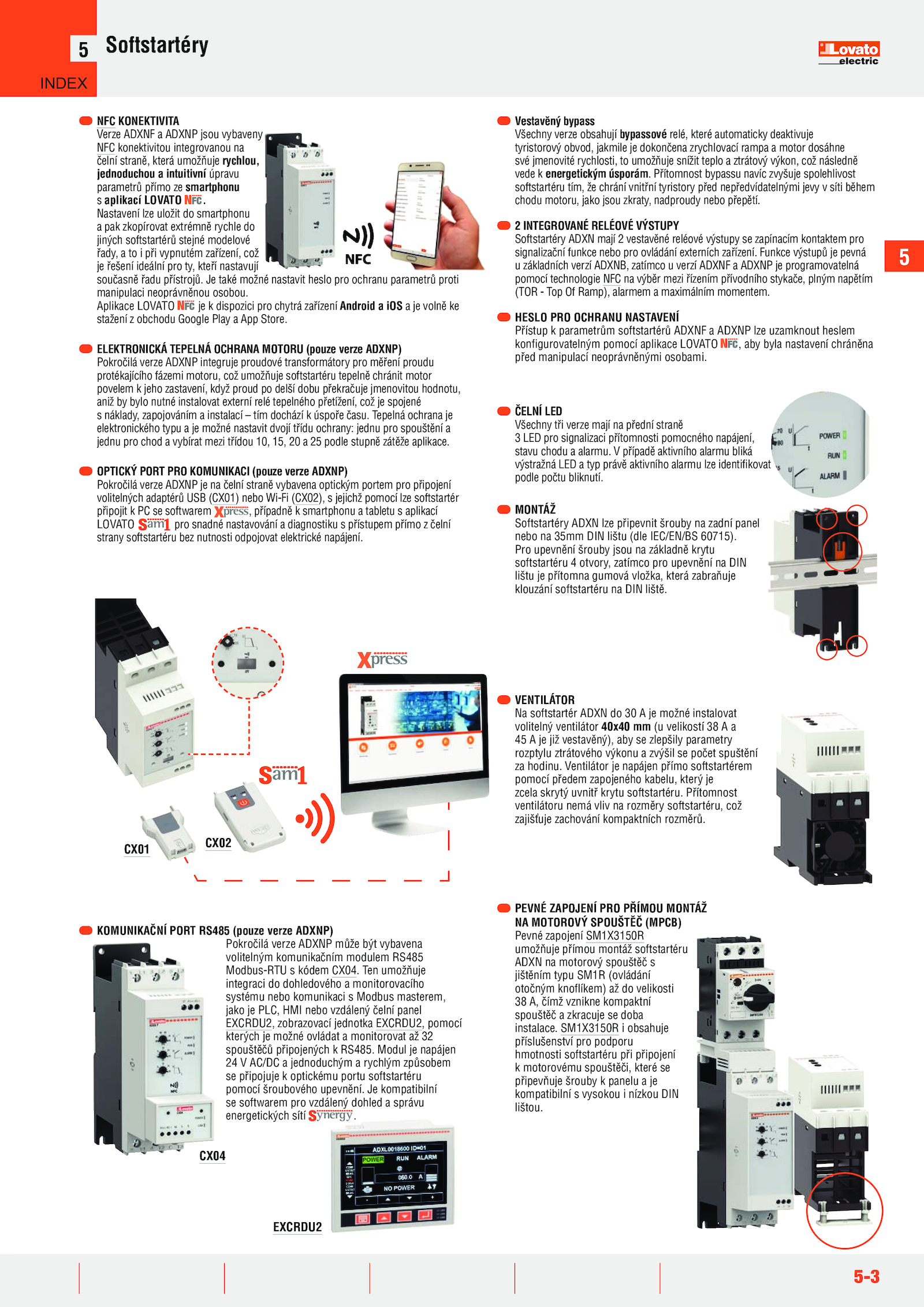 volitelných adaptérů USB (CX01) nebo Wi-Fi (CX02), jejichž pomocí lze softstartér