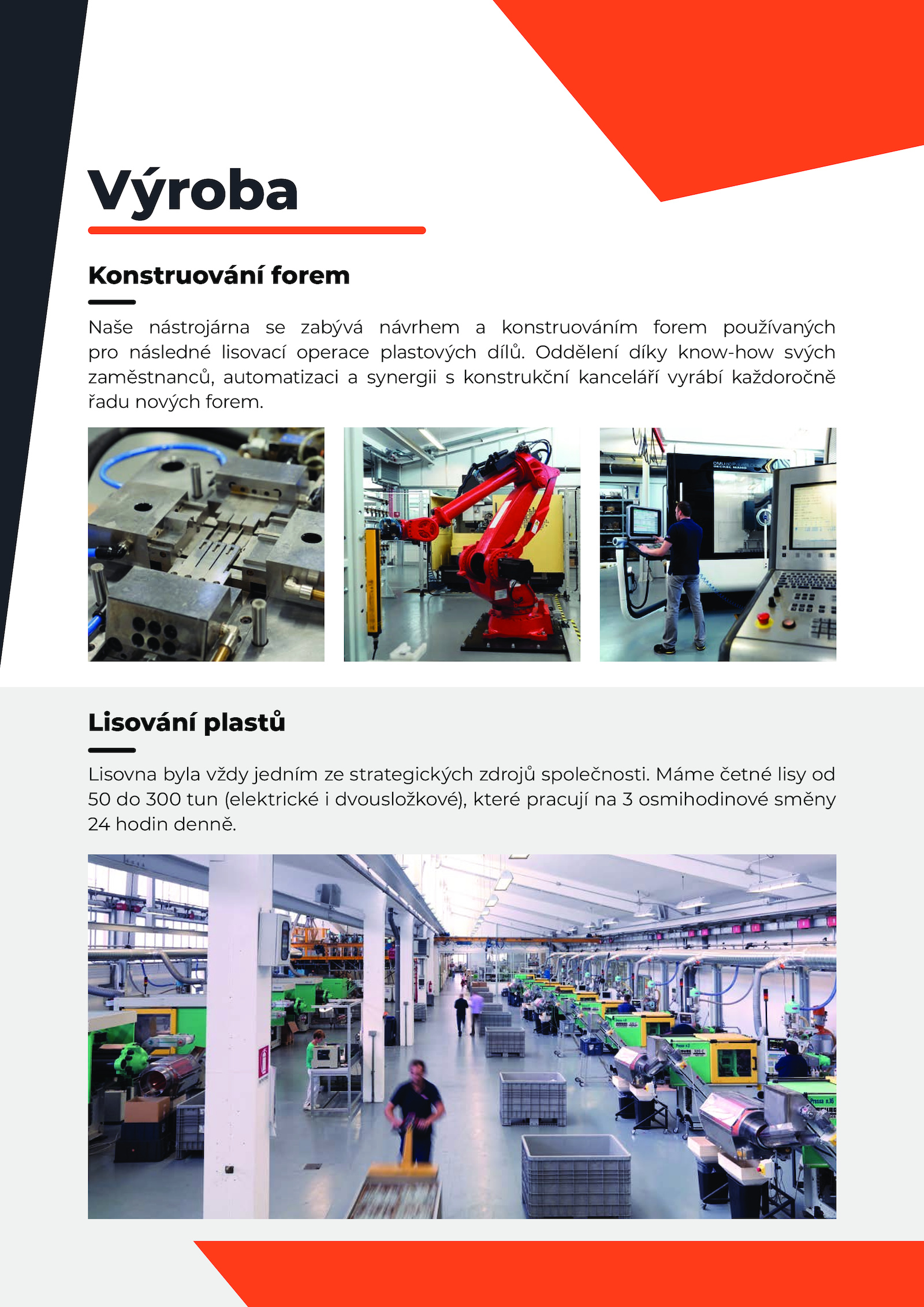 pro následné lisovací operace plastových dílů. Oddělení díky know-how svých