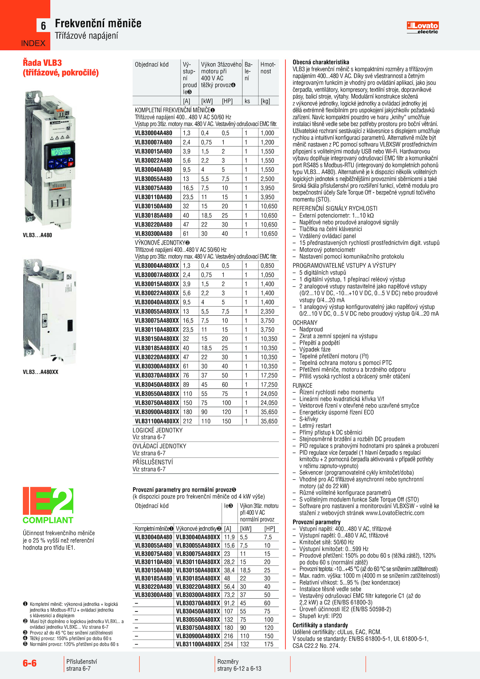 Objednací kód Ie Výkon 3fáz...6-6 Příslušenství