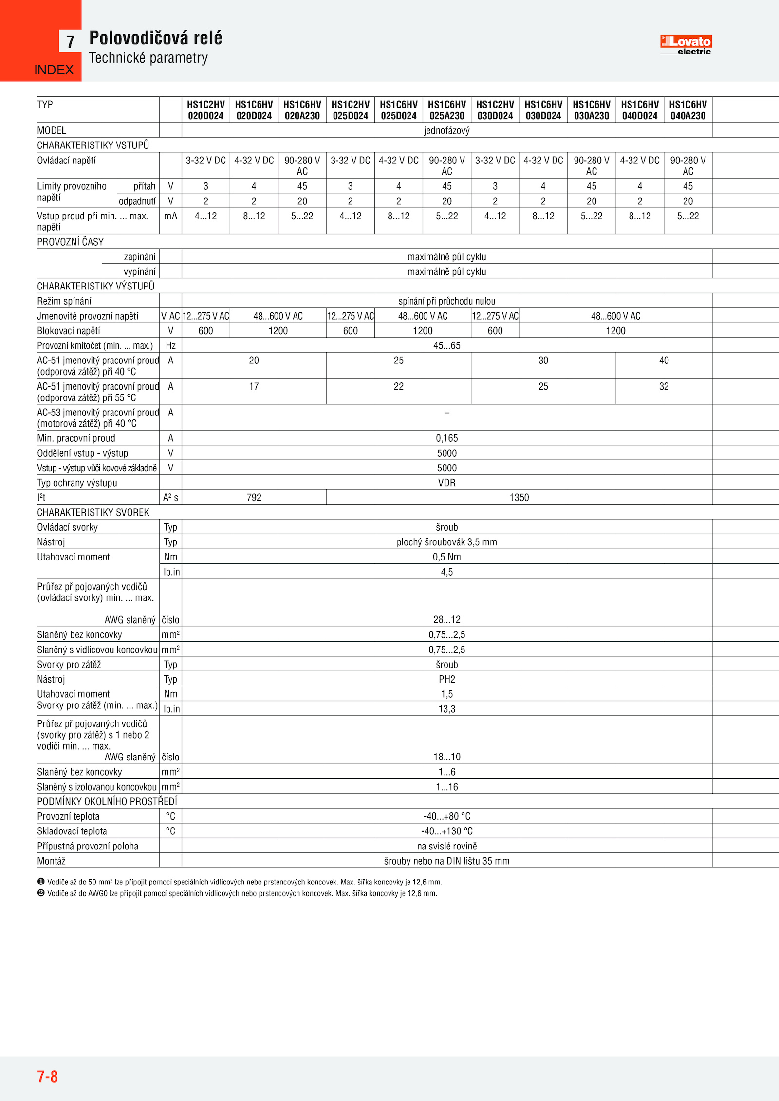 Jmenovité provozní napětí 12...600 12..7-8