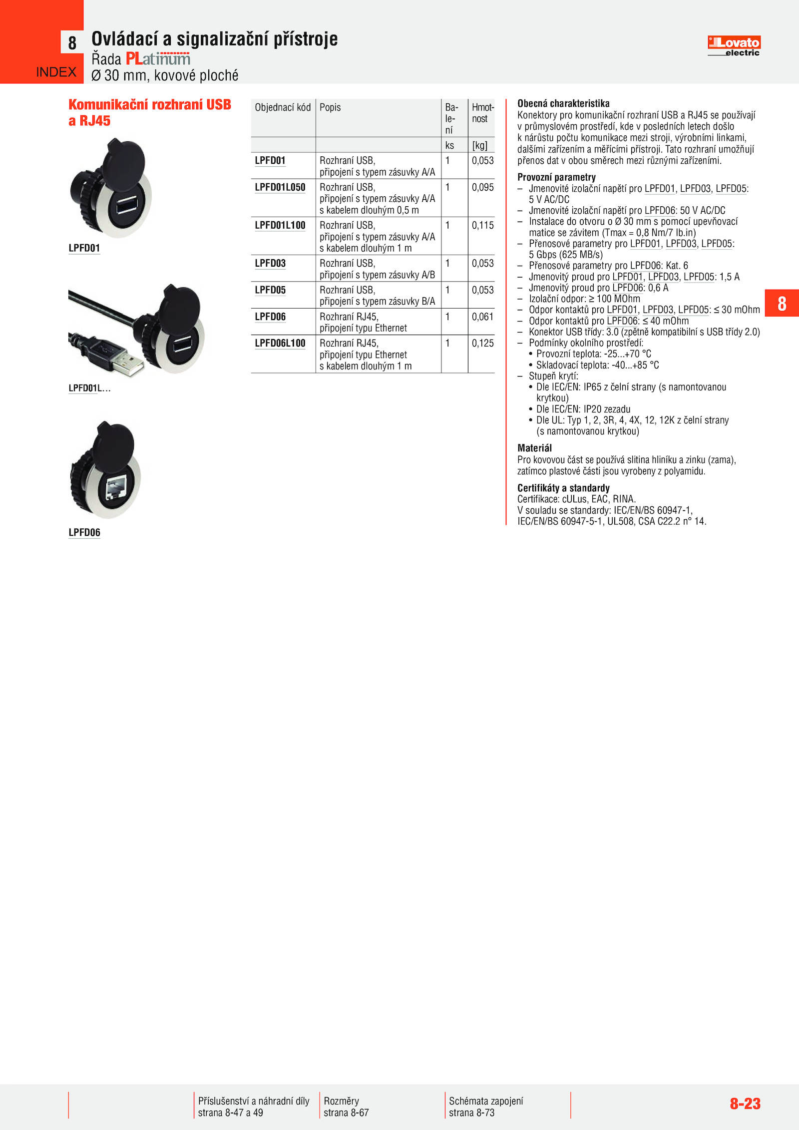 – Jmenovité izolační napětí pro LPFD01, LPFD03, LPFD05: