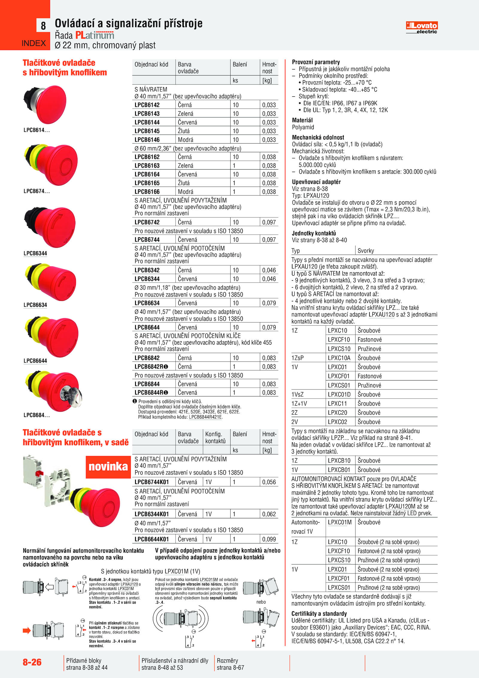 – Ovladače hřibovitým knoflíkem aretacíe: 300..