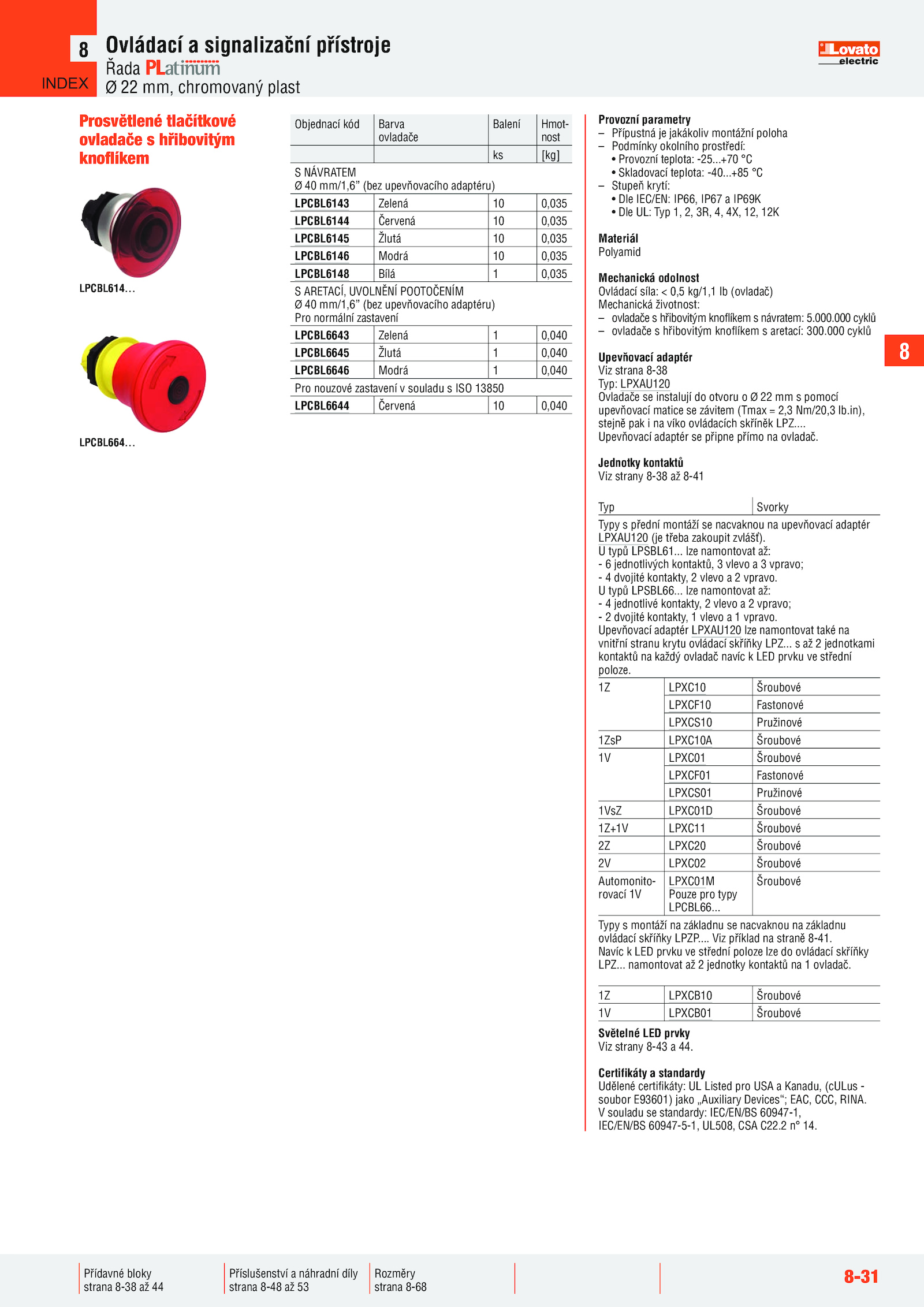 stejně pak víko ovládacích skříněk LPZ.000 cyklů